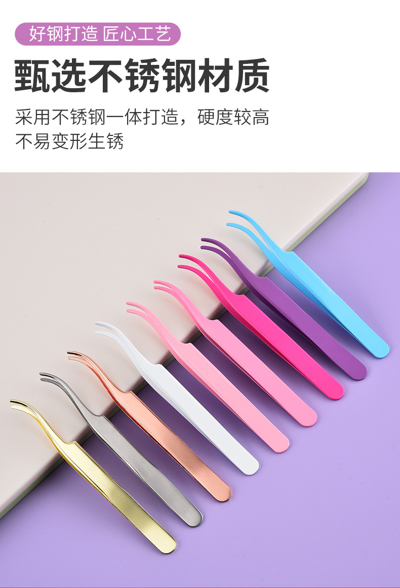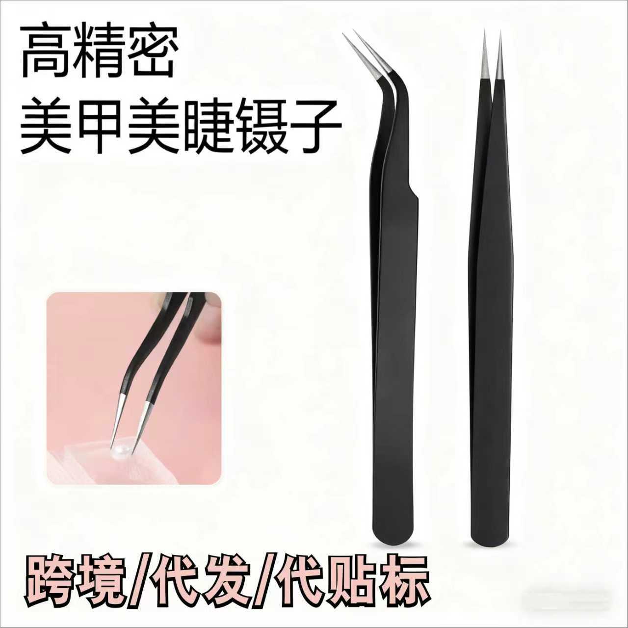 美甲镊子美甲工具睫毛镊子 美睫师嫁接睫毛夹弯头直头初学者工具