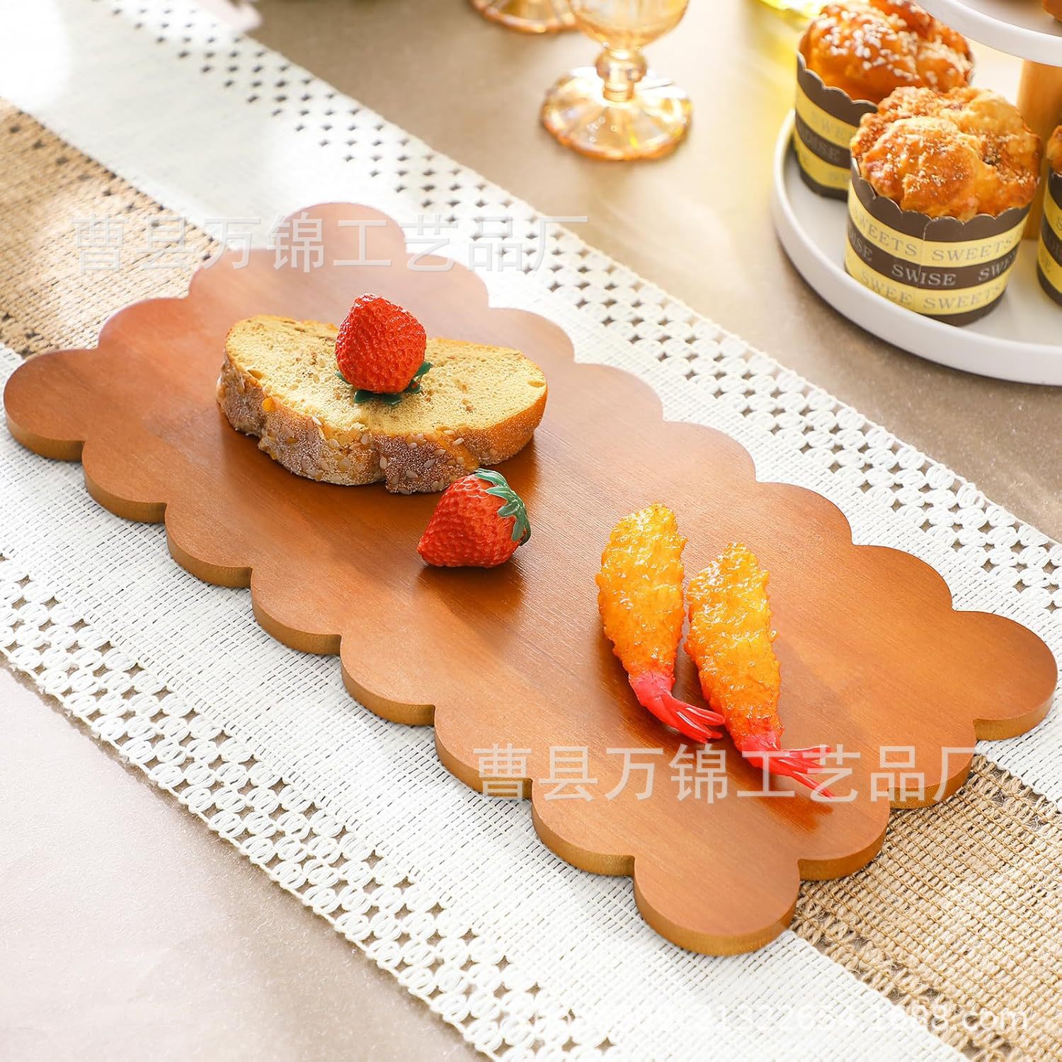 クロスボーダー木製扇形トレイキッチン木製長方形カッティングボード食品パンフルーツトレイデザートサービングプレート