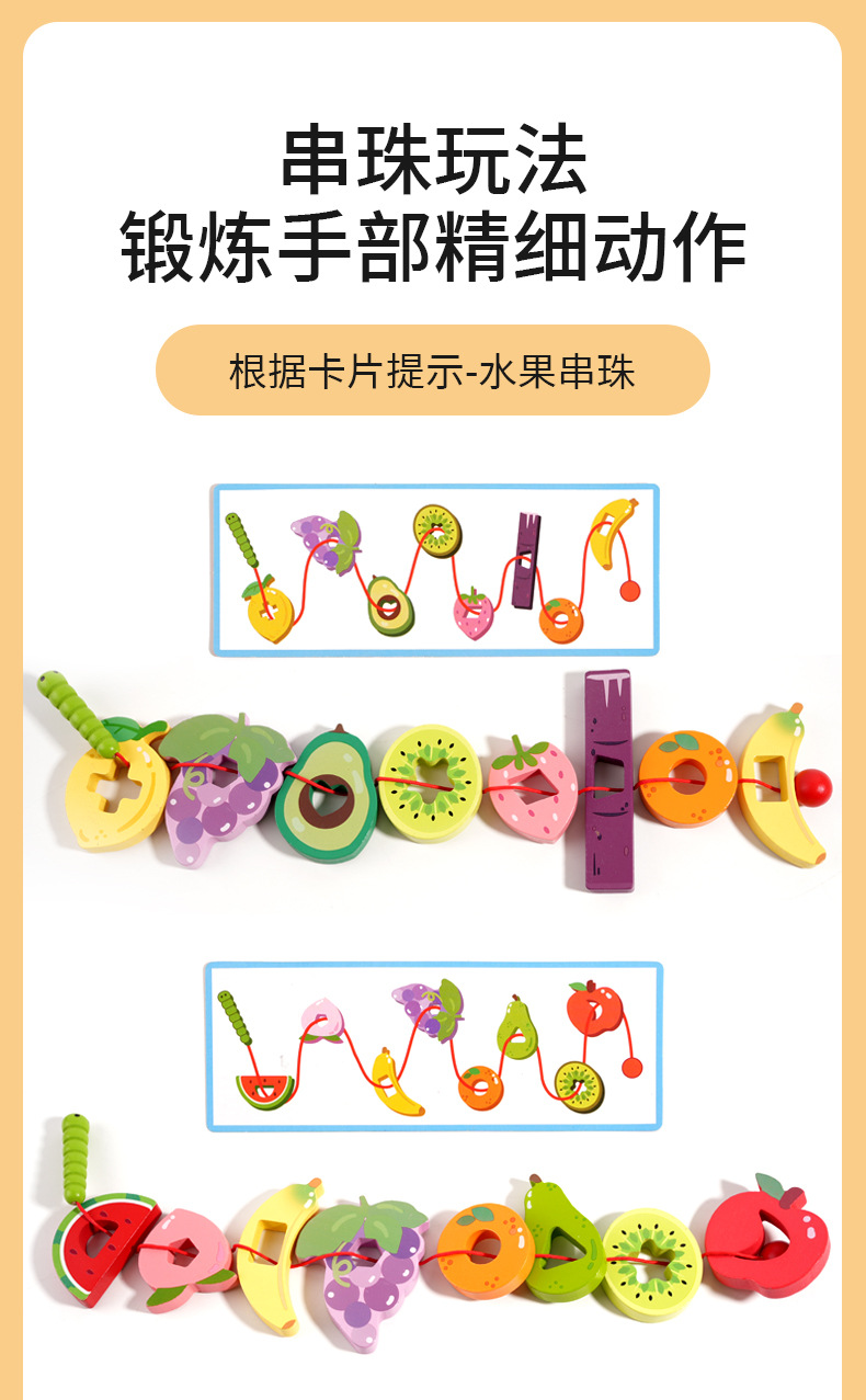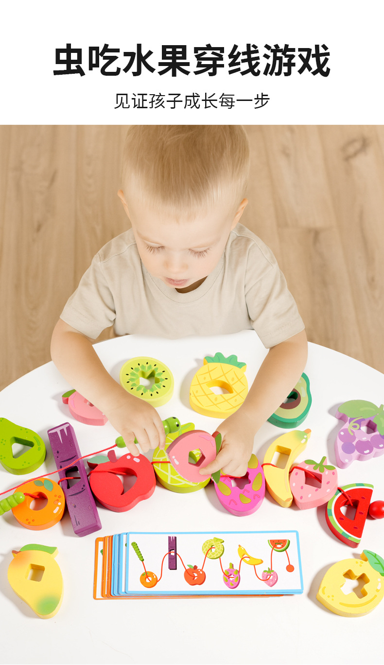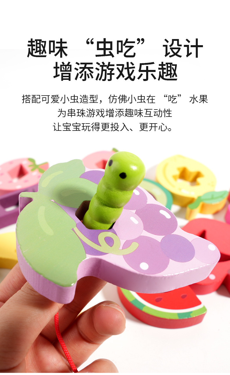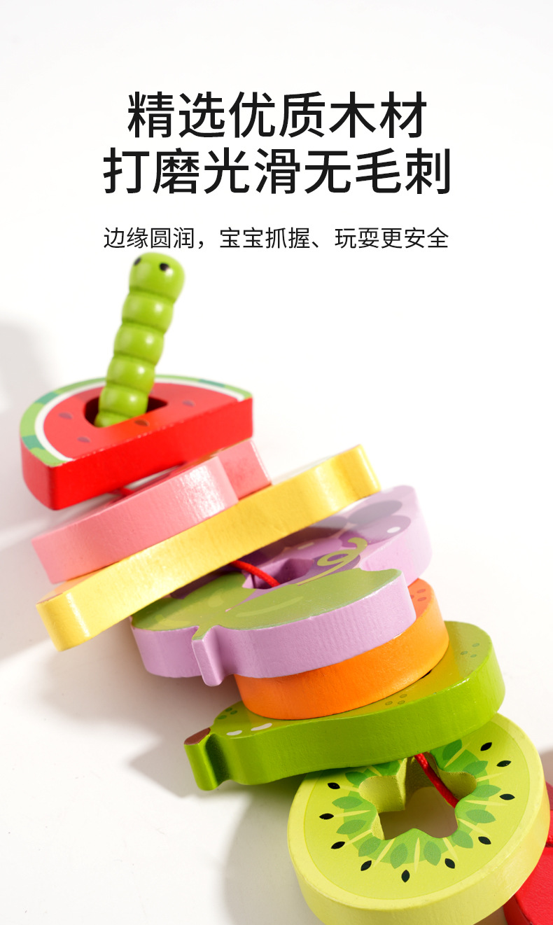 毛毛虫吃水果穿线串珠儿童精细动作训练幼儿园益智区材料穿绳玩具