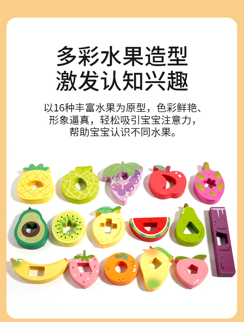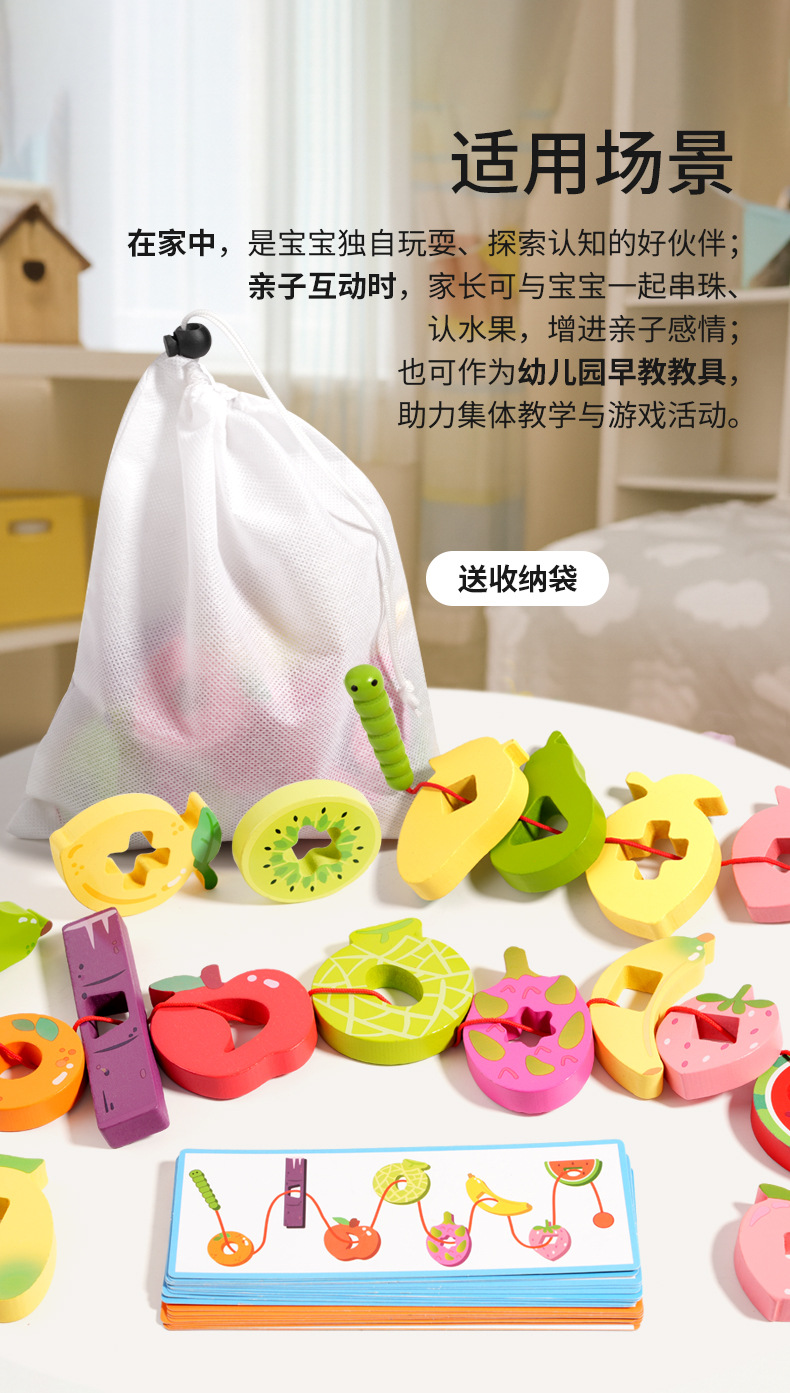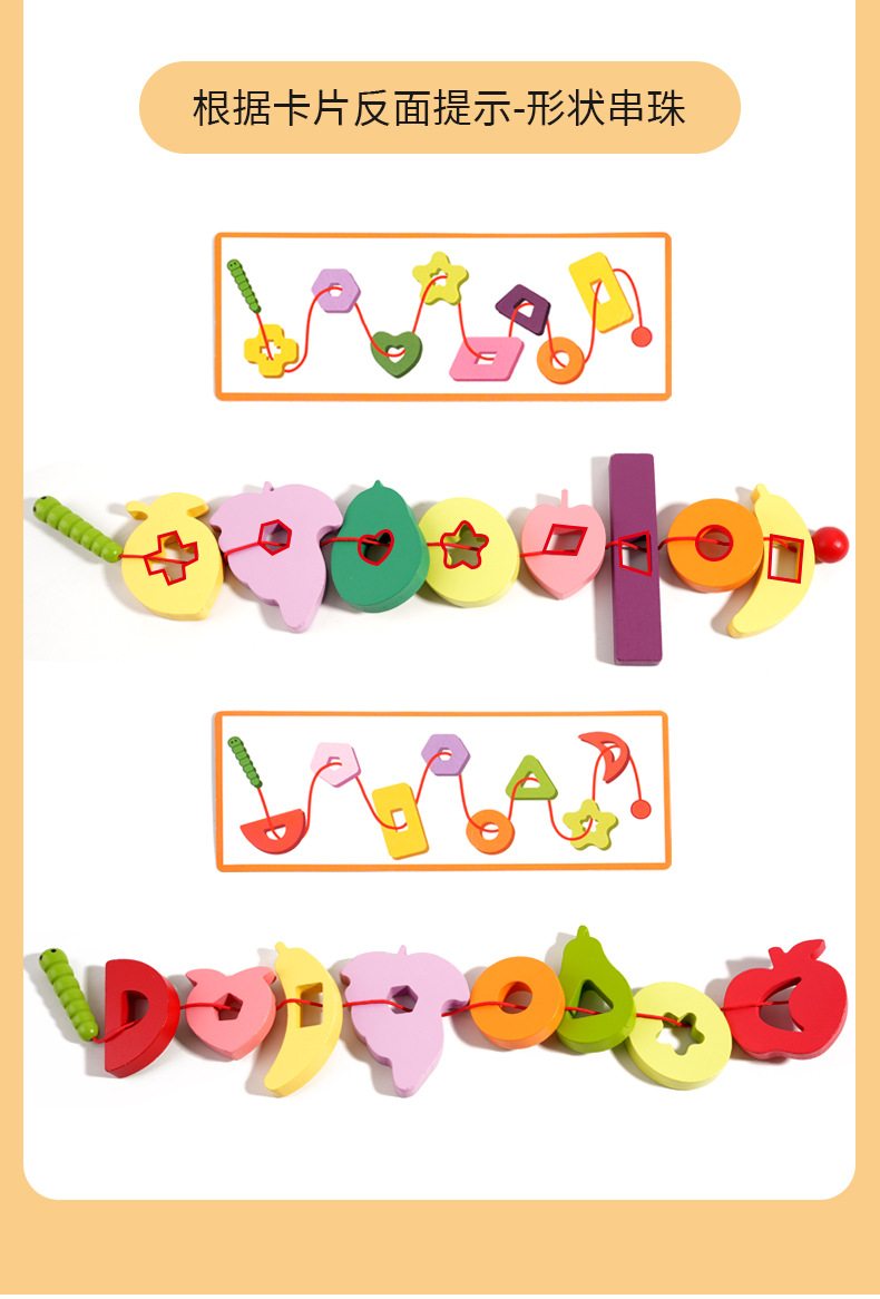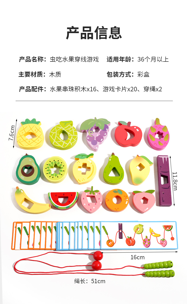 毛毛虫吃水果穿线串珠儿童精细动作训练幼儿园益智区材料穿绳玩具