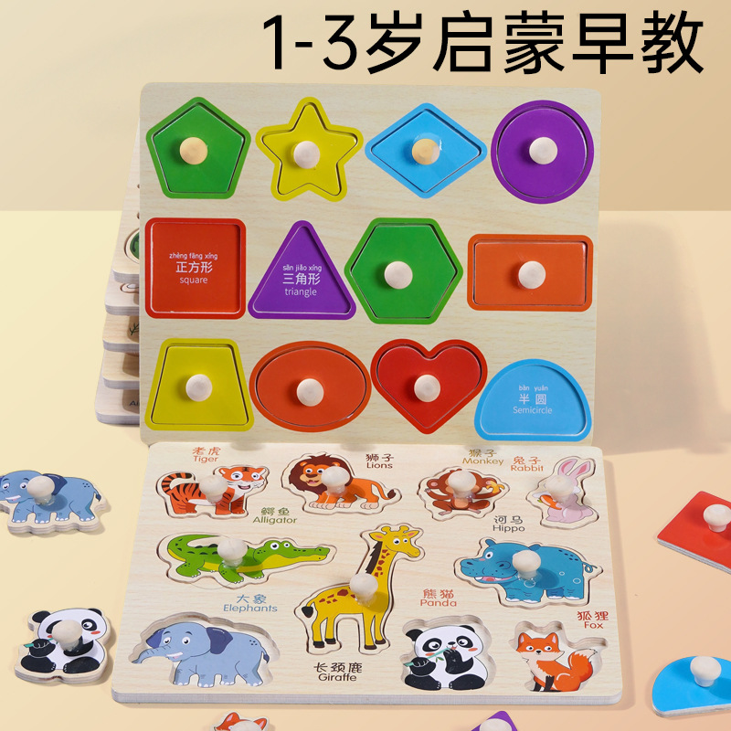 蒙氏早教手掴み板パズル知育玩具パネル児童認知ペア一歳半赤ちゃん積み木