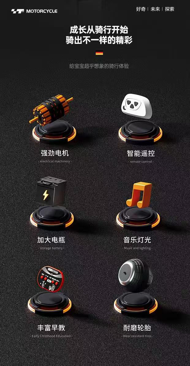 德国儿童电动摩托车三轮车男女孩宝宝可坐人充电遥控玩具车电瓶车