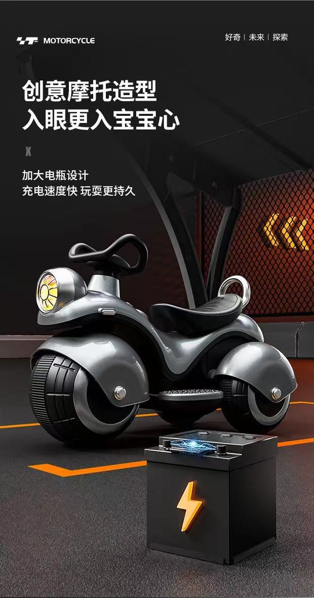 厂家批发儿童电动摩托车男女宝宝电瓶三轮车遥控充电可坐人玩具车