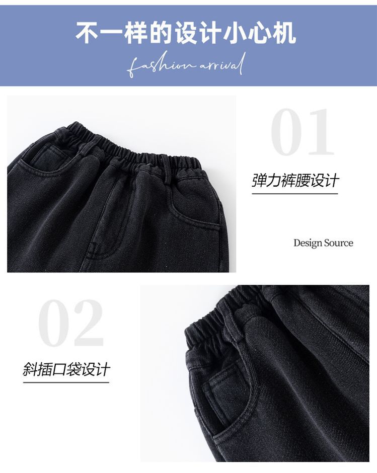 冬季新款女童洋气牛仔裤女大童时尚直筒裤儿童休闲阔腿裤宽松长裤
