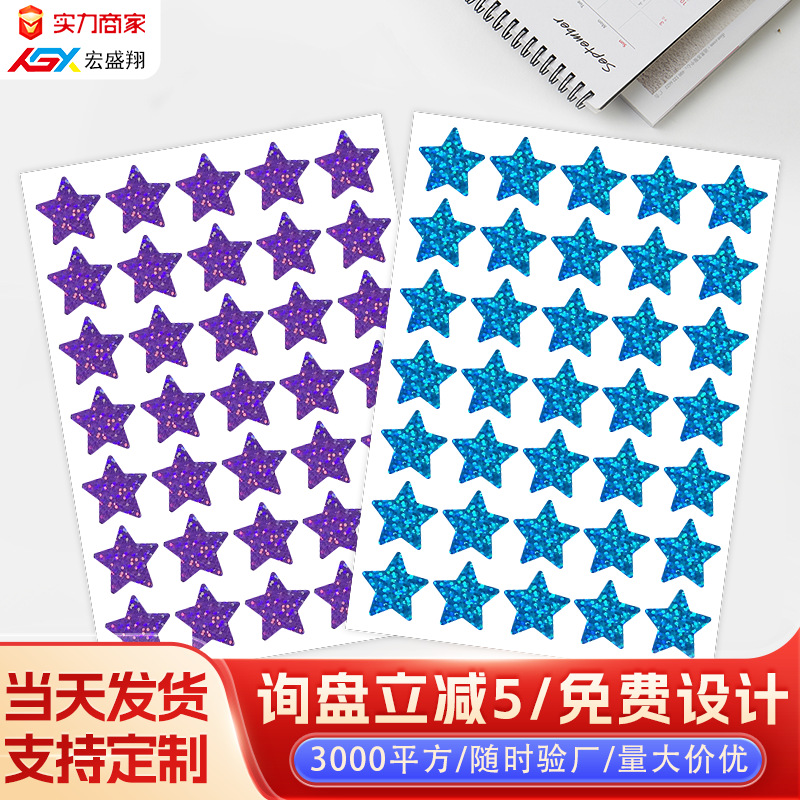 学生奖励星星贴纸防水彩色diy手账装饰礼品五角星镭射不干胶标签