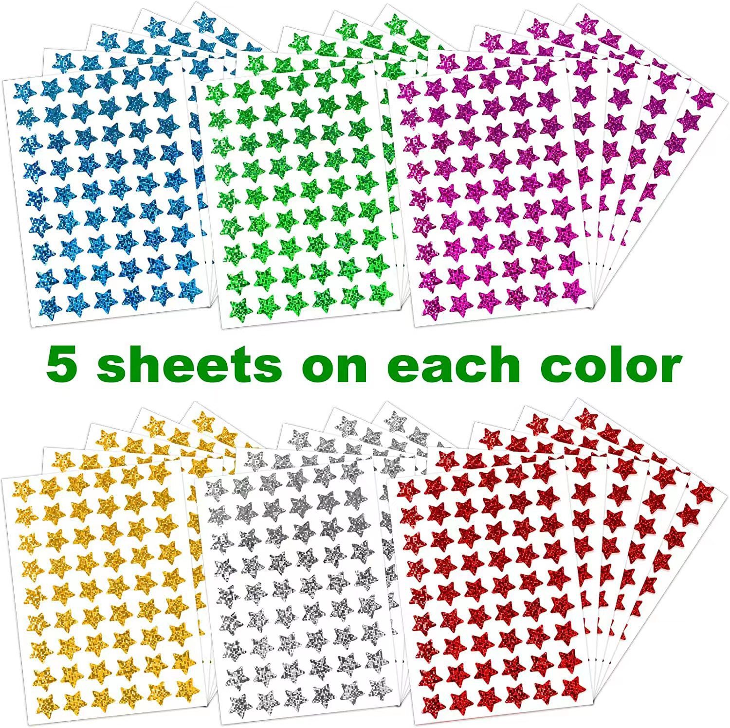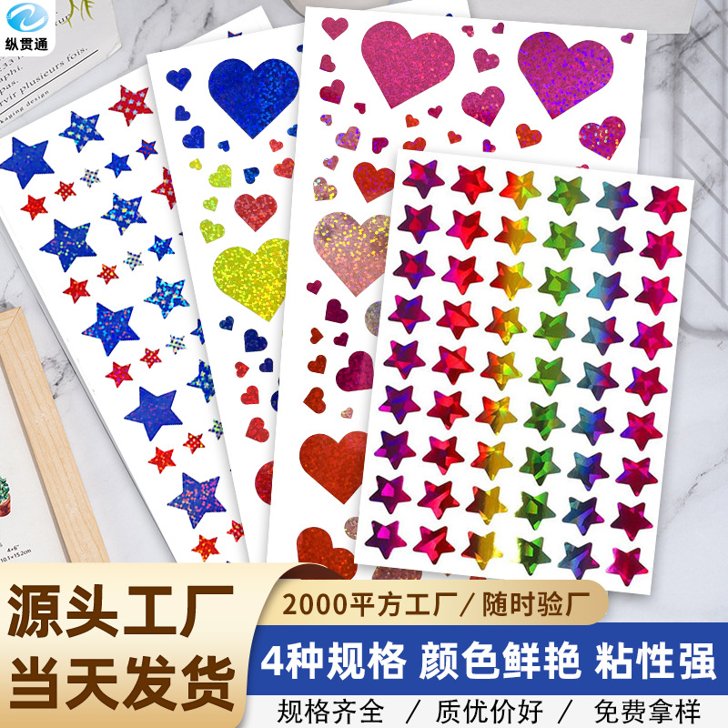 幼稚園児向けのクロスボーダースターステッカー、防水・耐油特殊形状レーザー粘着カラーラベルステッカー