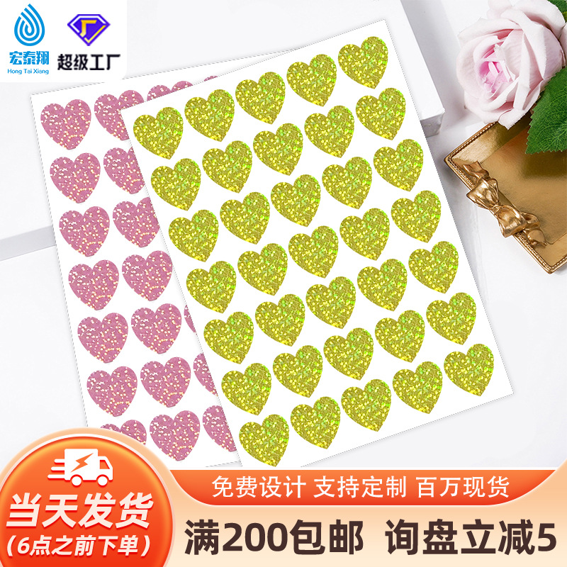 外贸热销现货镭射彩色爱心奖励贴纸情人节红色爱心包装装饰贴纸