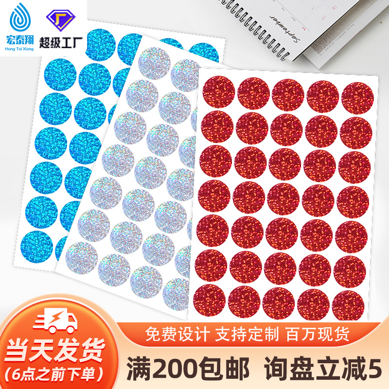 亚马逊diy手账礼品分类镭射圆形防水标签彩色模切不干胶封口贴纸