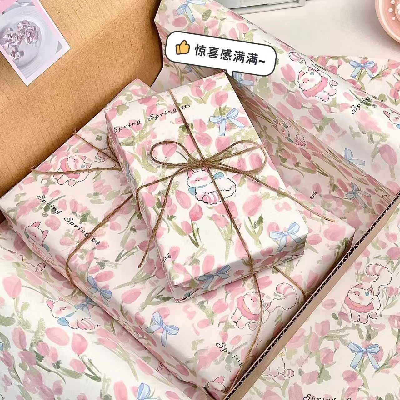 新款郁金香猫咪包装纸原创ins风高颜值大尺寸节日送礼品包装材料