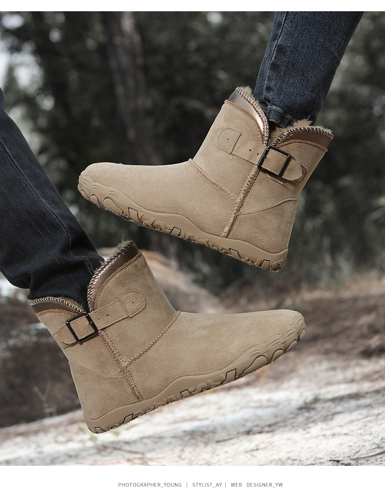 越境冬の雪地靴男性カップルスキーブーツ防水滑り止め綿靴女性ベルベット厚手五本指登山ブーツ