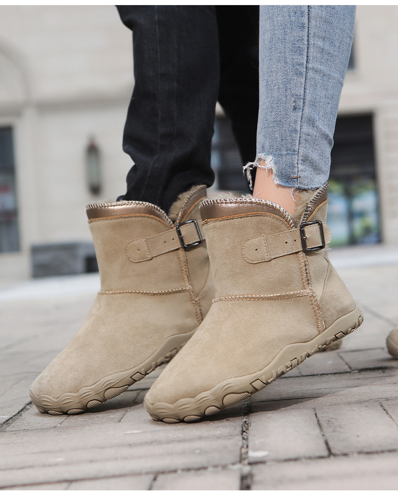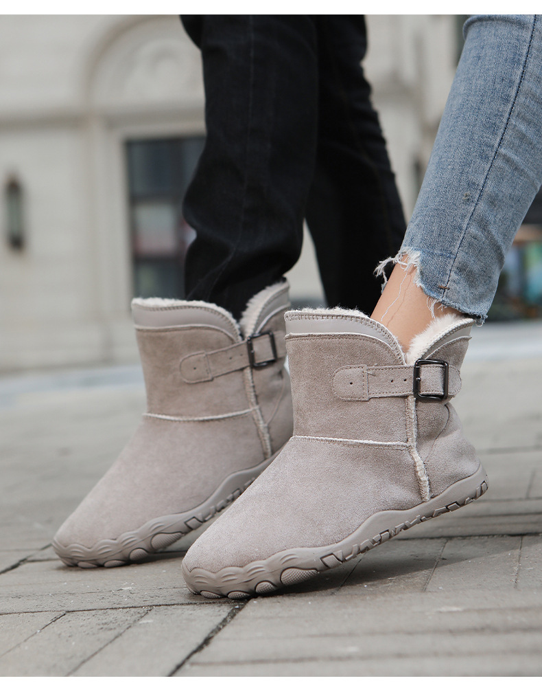 女士冬季新款雪地靴加羊京绒加厚可爱中帮女靴皮毛一体户外保暖靴