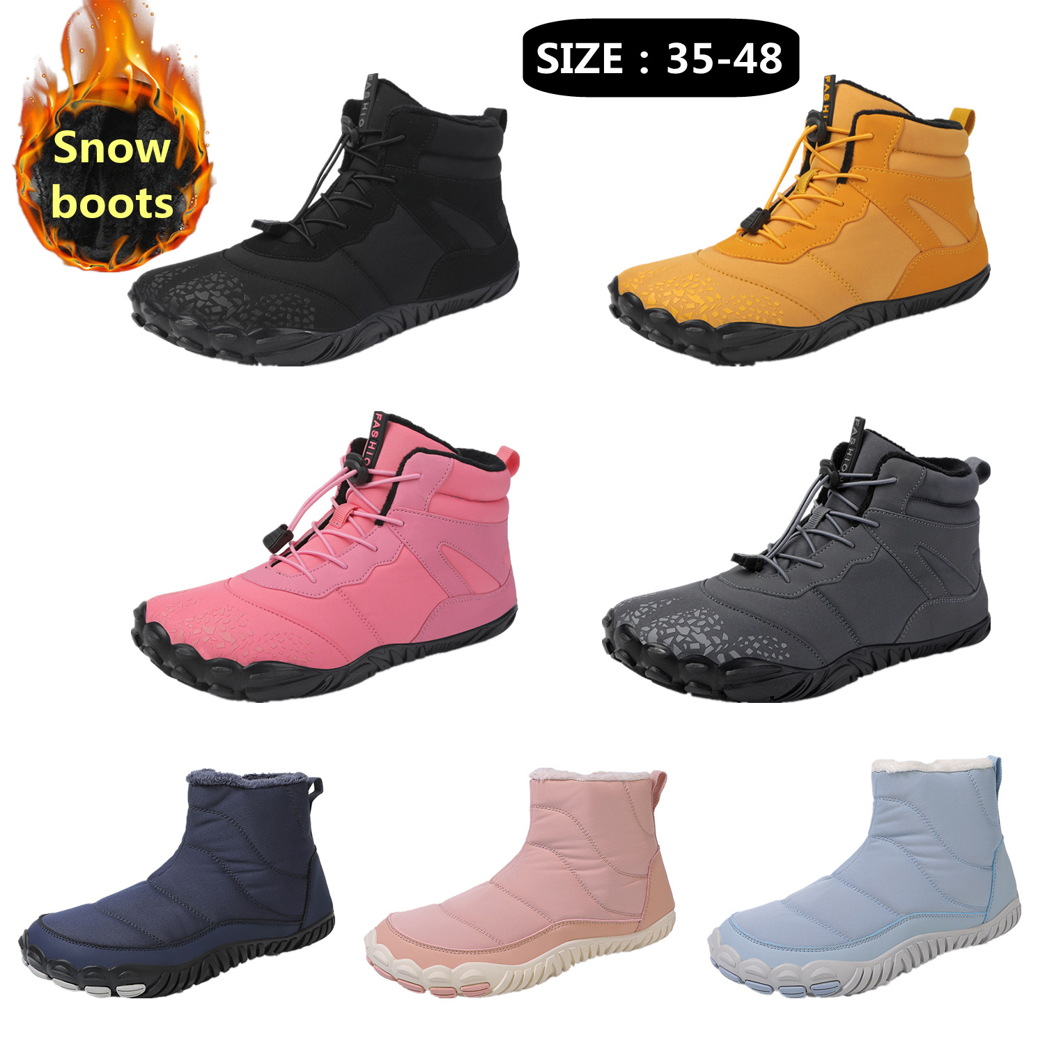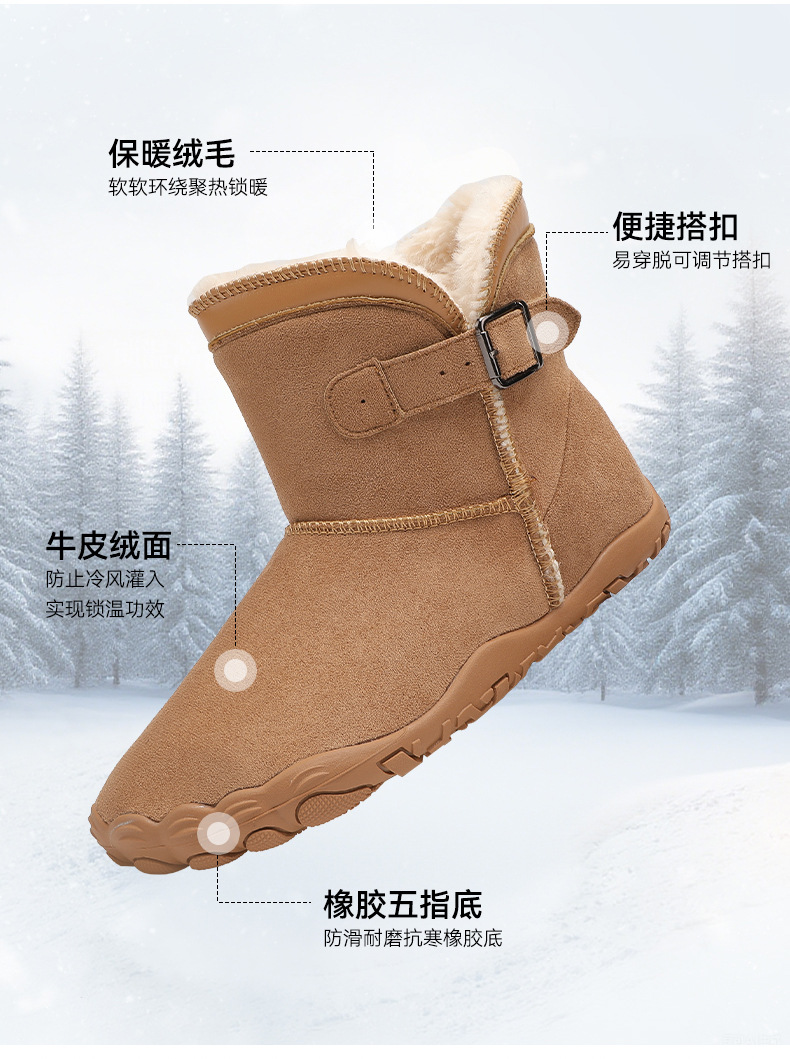 跨境新款户外冬季登山鞋五指雪地靴女棉鞋男加绒加厚保暖情侣棉靴