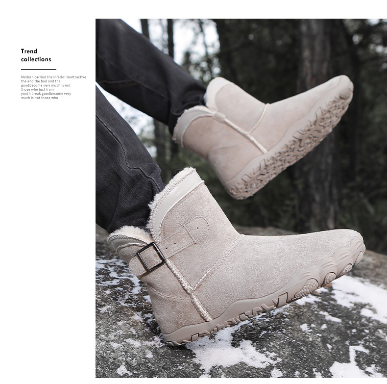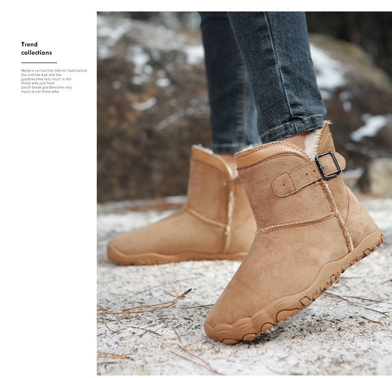 户外雪地靴男防滑防水加绒保暖五指鞋棉鞋女厚底赤足冬季情侣靴子