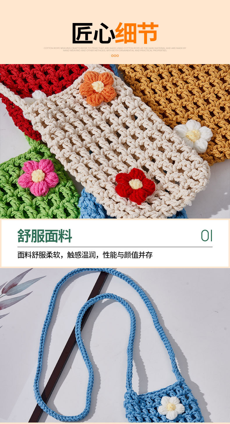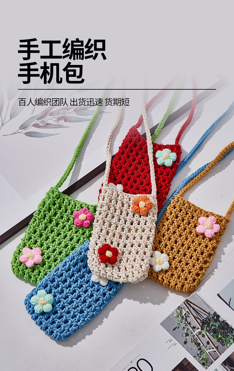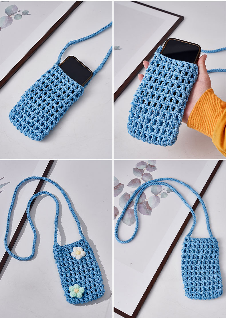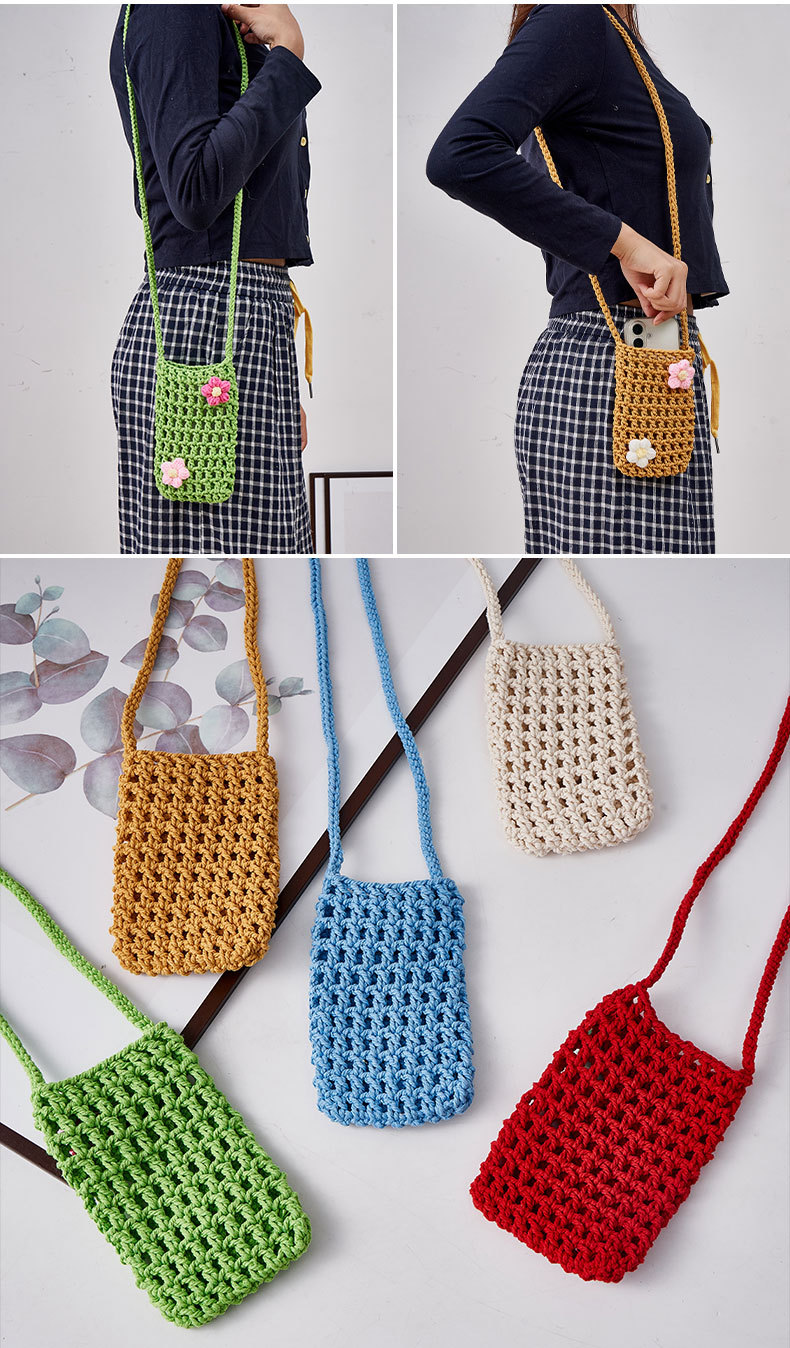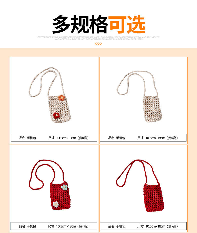 手工编织镂空手机包 清新轻便百搭棉绳diy编织 单肩包女斜挎包包