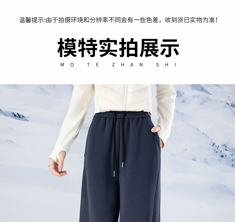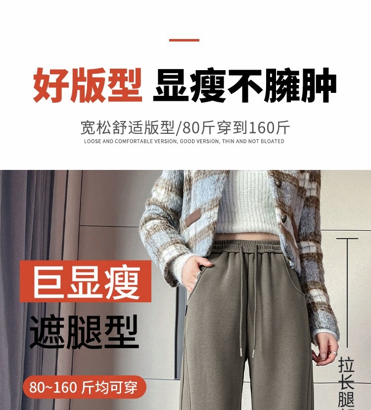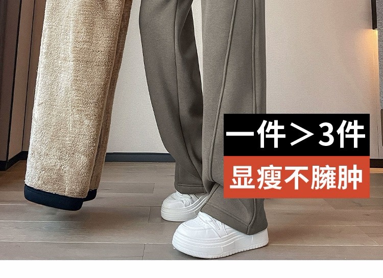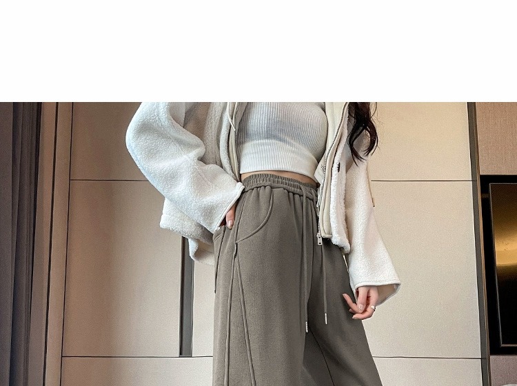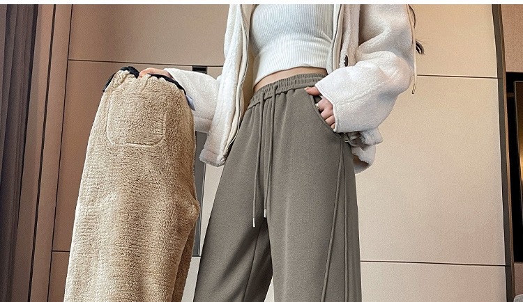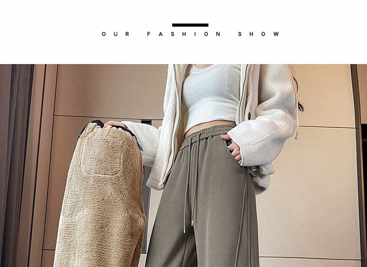 羊羔绒阔腿裤女冬季加绒加厚新款运动裤休闲雪尼尔直筒窄版卫裤子