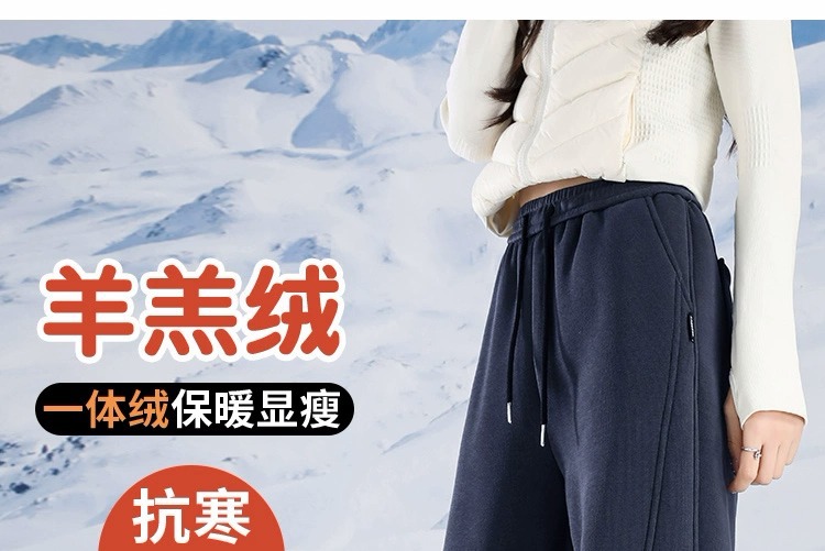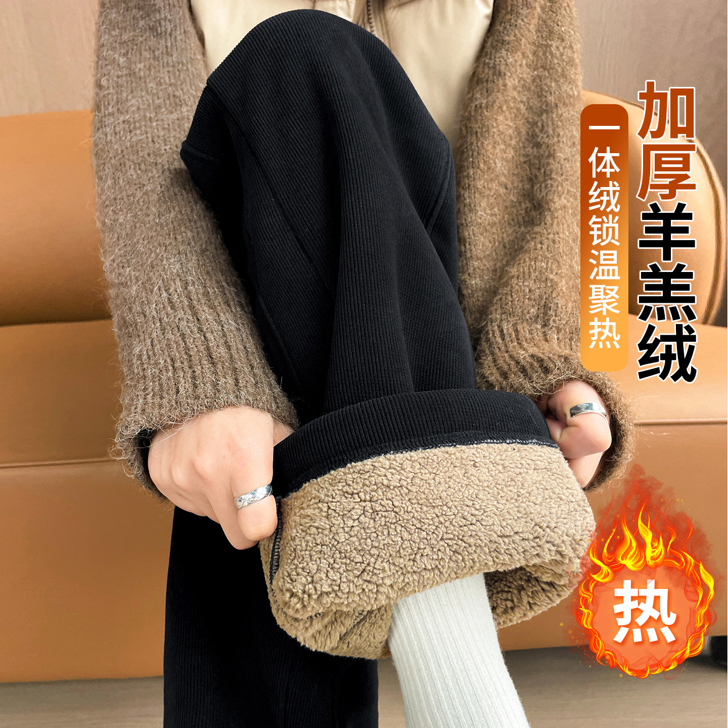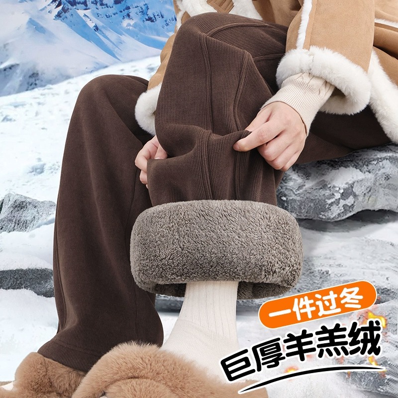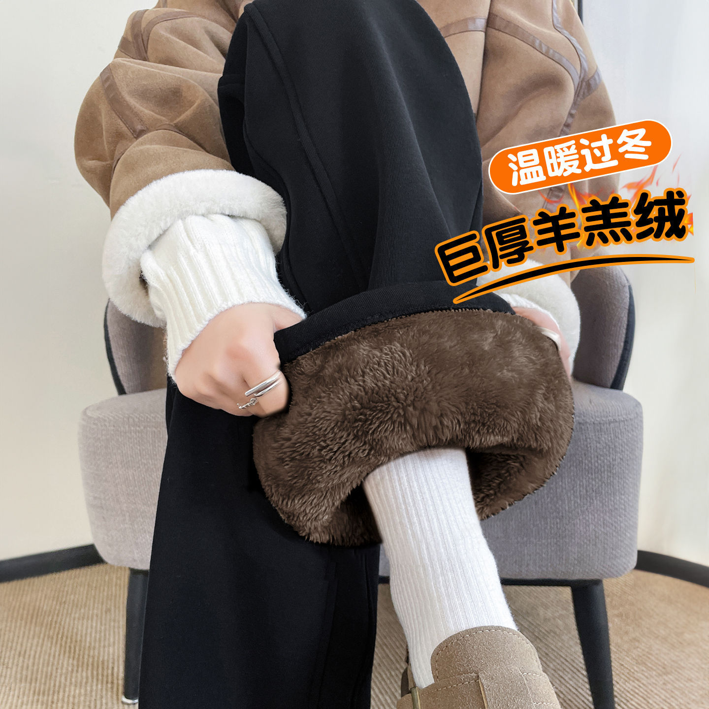 加绒裤子女冬季2025新款加厚羊羔绒外穿防风保暖棉裤直筒裤阔腿裤