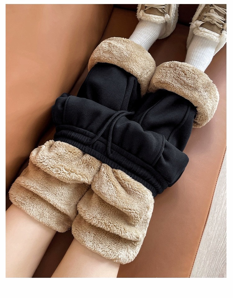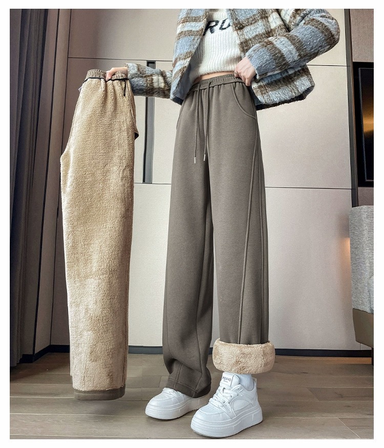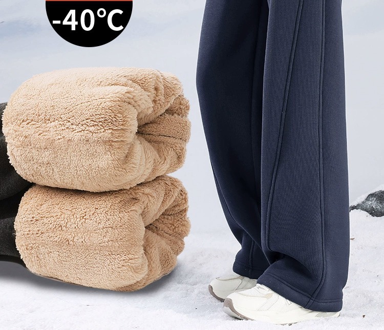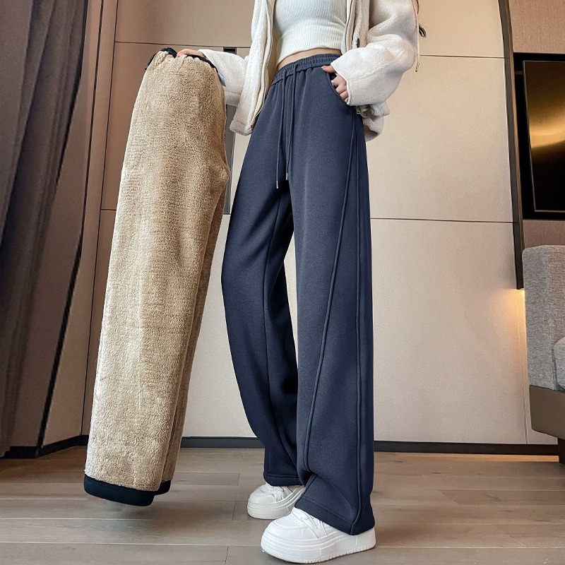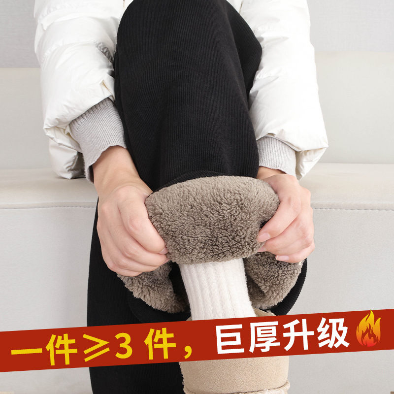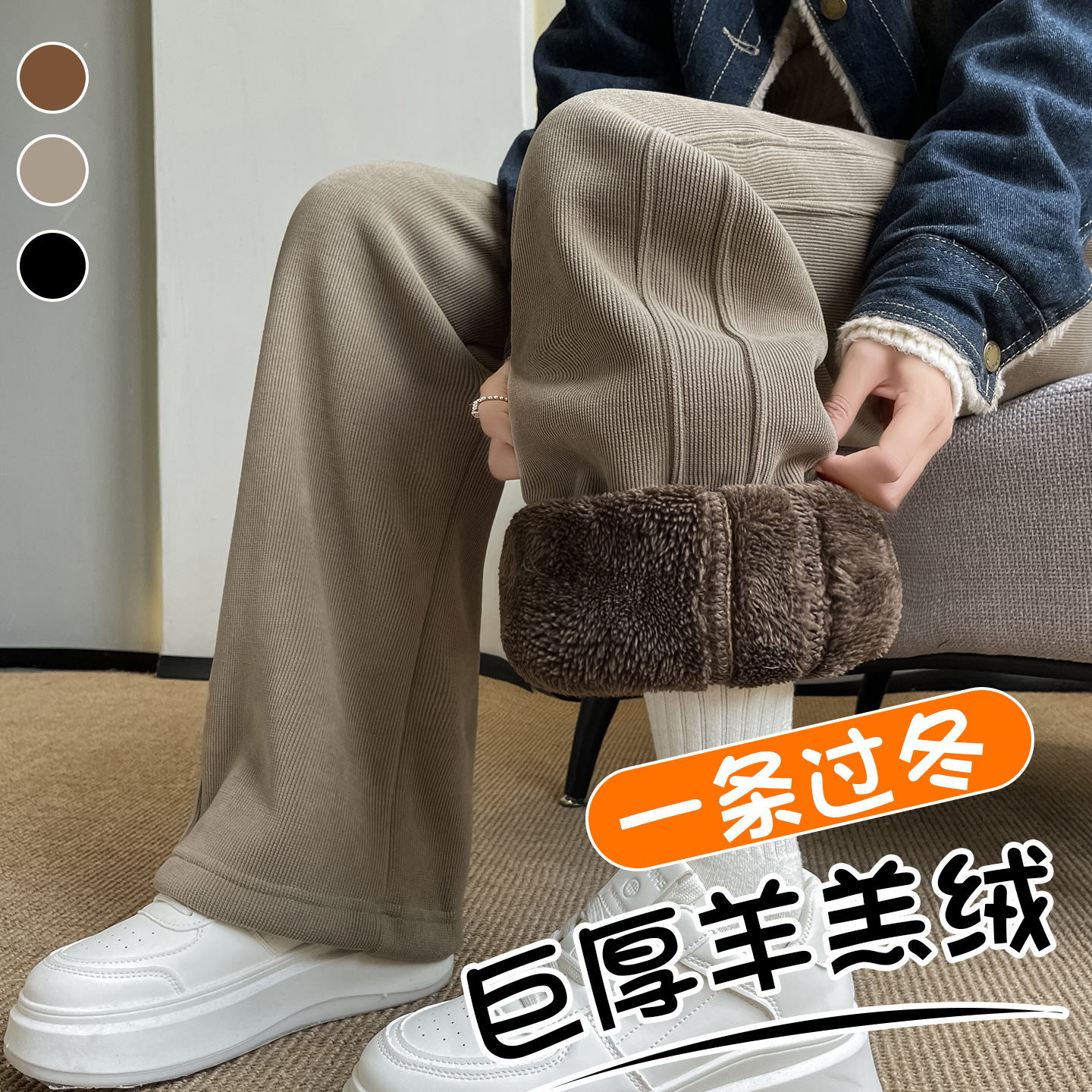 加绒裤子女冬季2025新款加厚羊羔绒外穿防风保暖棉裤直筒裤阔腿裤