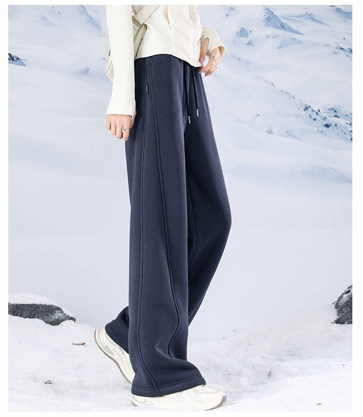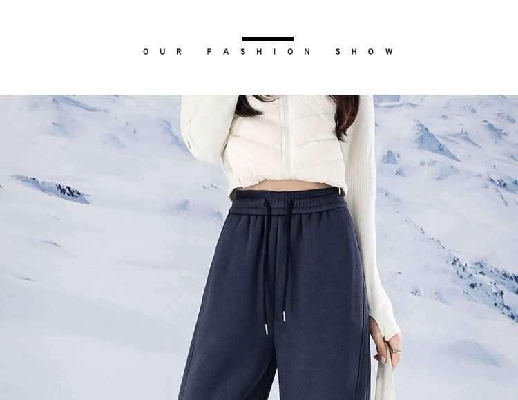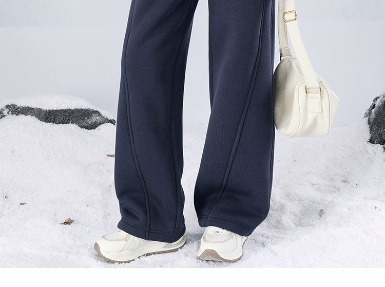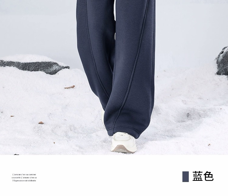 ラムウールワイドレッグパンツ レディース 秋冬 ストレート カジュアル アウター コットンパンツ 2025年新作 裏起毛 スポーツ バナナパンツ