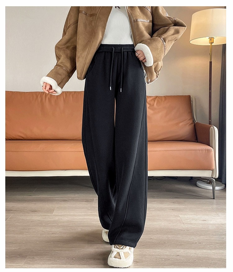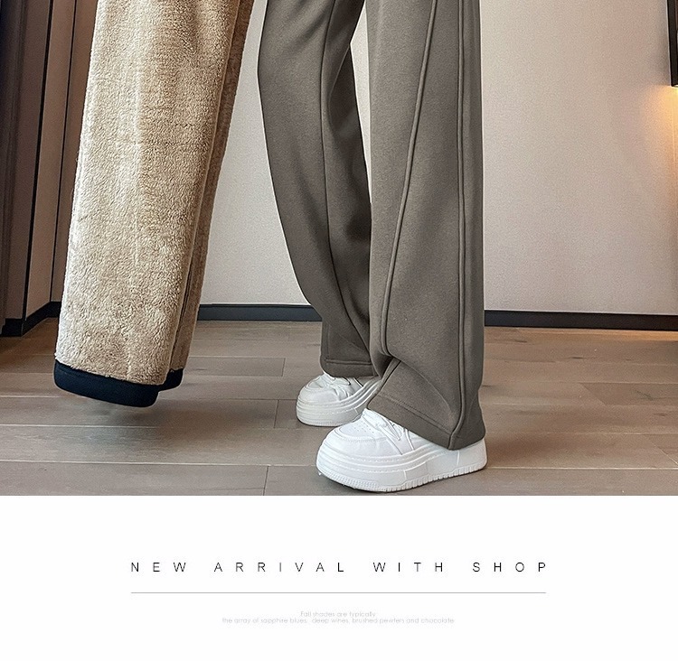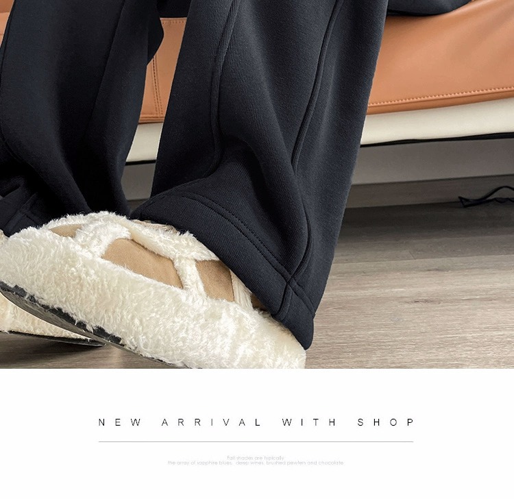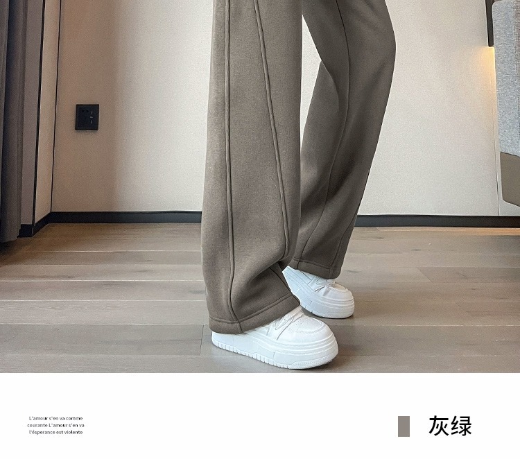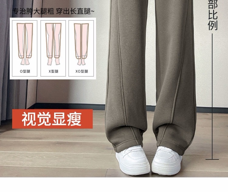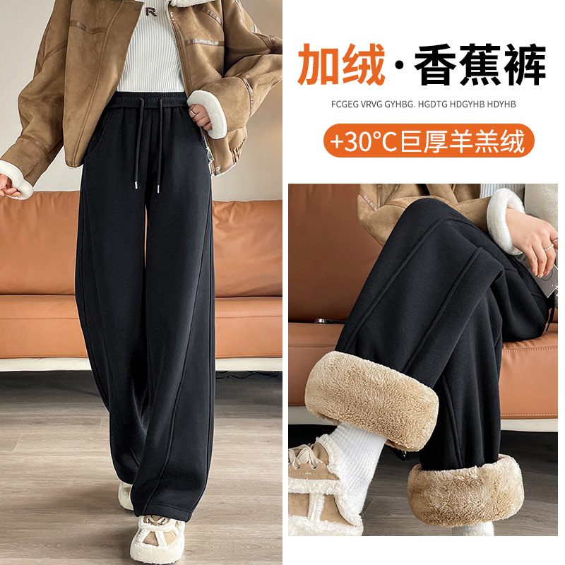ベルベットのバナナのズボンの女性は冬の2024の新しい厚手の子羊のベルベットのズボンの狭いバージョンのストレートなスポーツのカジュアルなズボンを厚くします