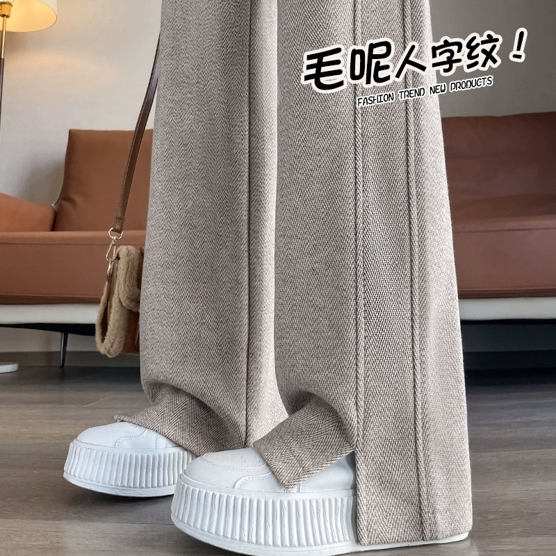 人の字の紋様のベルベットの広脚のズボンの女性の秋冬2025の新型の毛はズボンのまっすぐな筒のウールの狭い版のバナナのズボンを開けます。