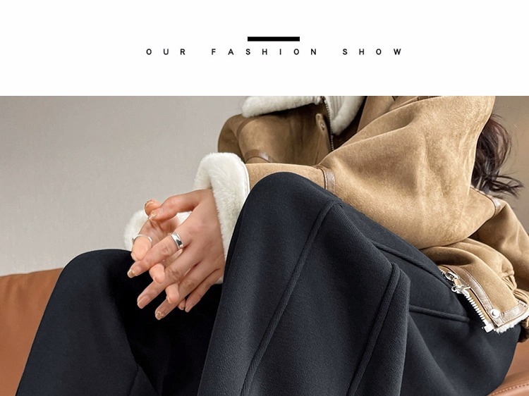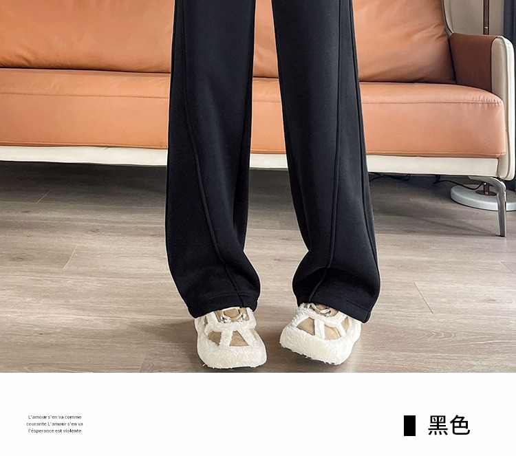 黑色加绒加厚羊羔绒阔腿裤女秋冬2025新款窄版直筒显瘦运动卫裤子