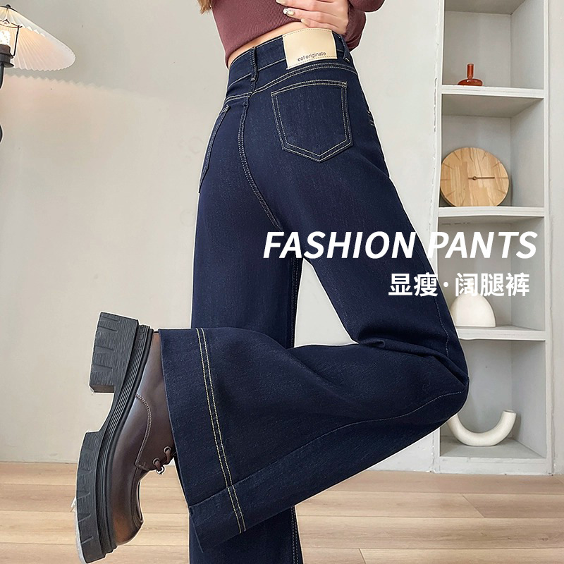 デニムブルーのワイドレッグパンツ レディース 2025春夏新作 ハイウエスト ゆったり 股間をカバー 着痩せ効果 脚長効果 背の高い女性向けデニムパンツ