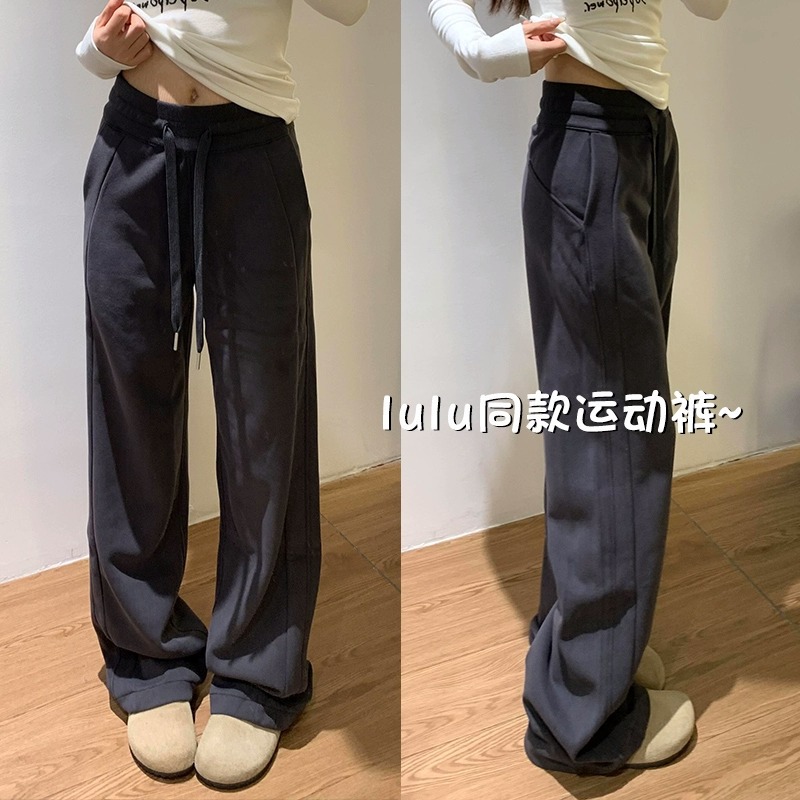 濃い灰色のluluの同じタイプのスポーツのズボンの女性の秋冬のベルベットの小さい背のカジュアルなゆったりしているまっすぐな筒の狭い版の広い足の衛のズボン