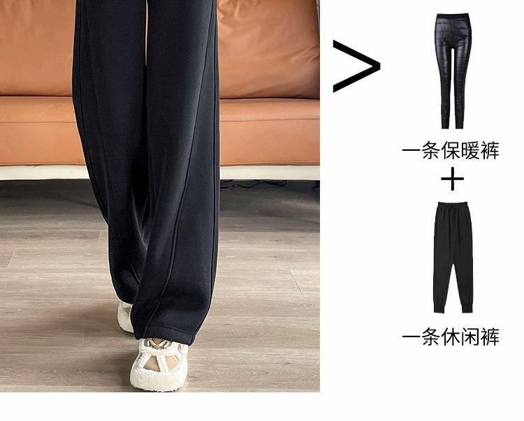 黑色阔腿裤女冬季2025新款窄版羊羔绒外穿棉裤加绒运动裤直筒裤子