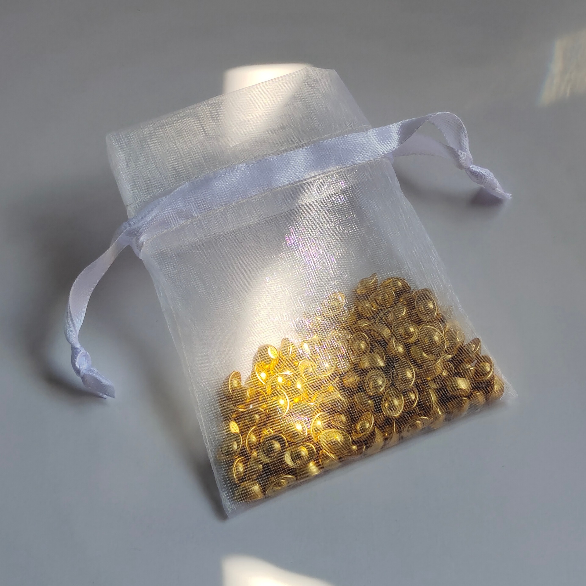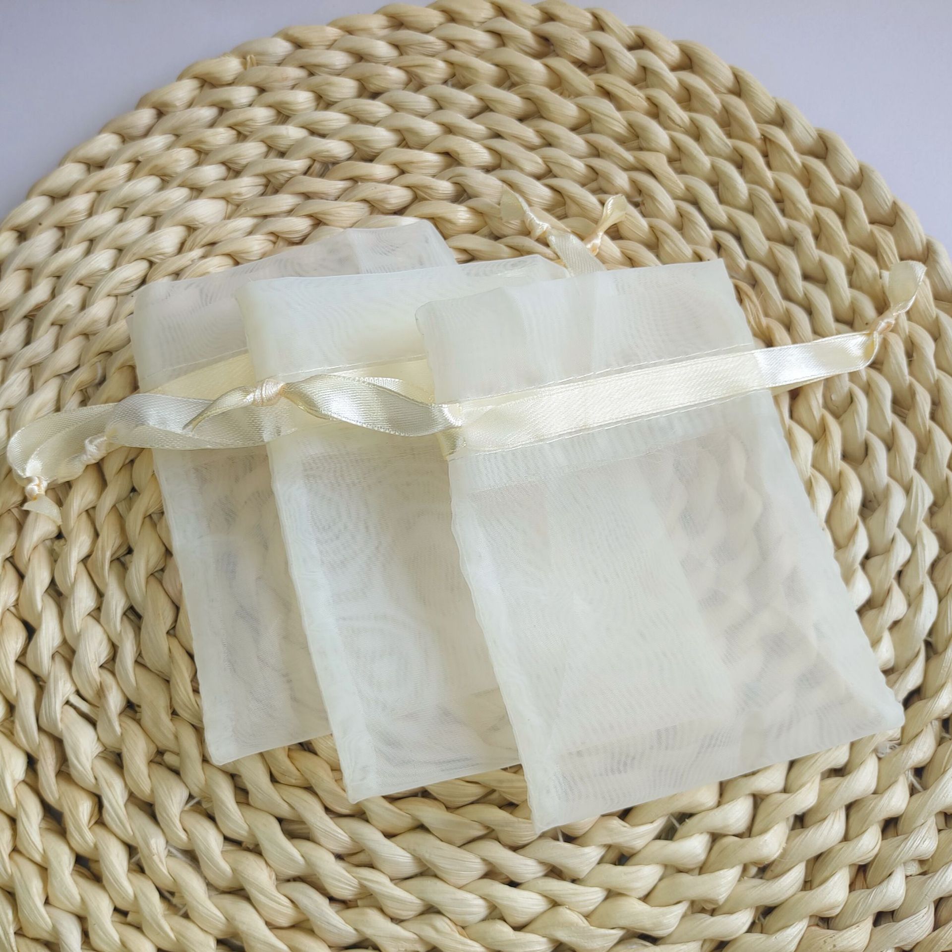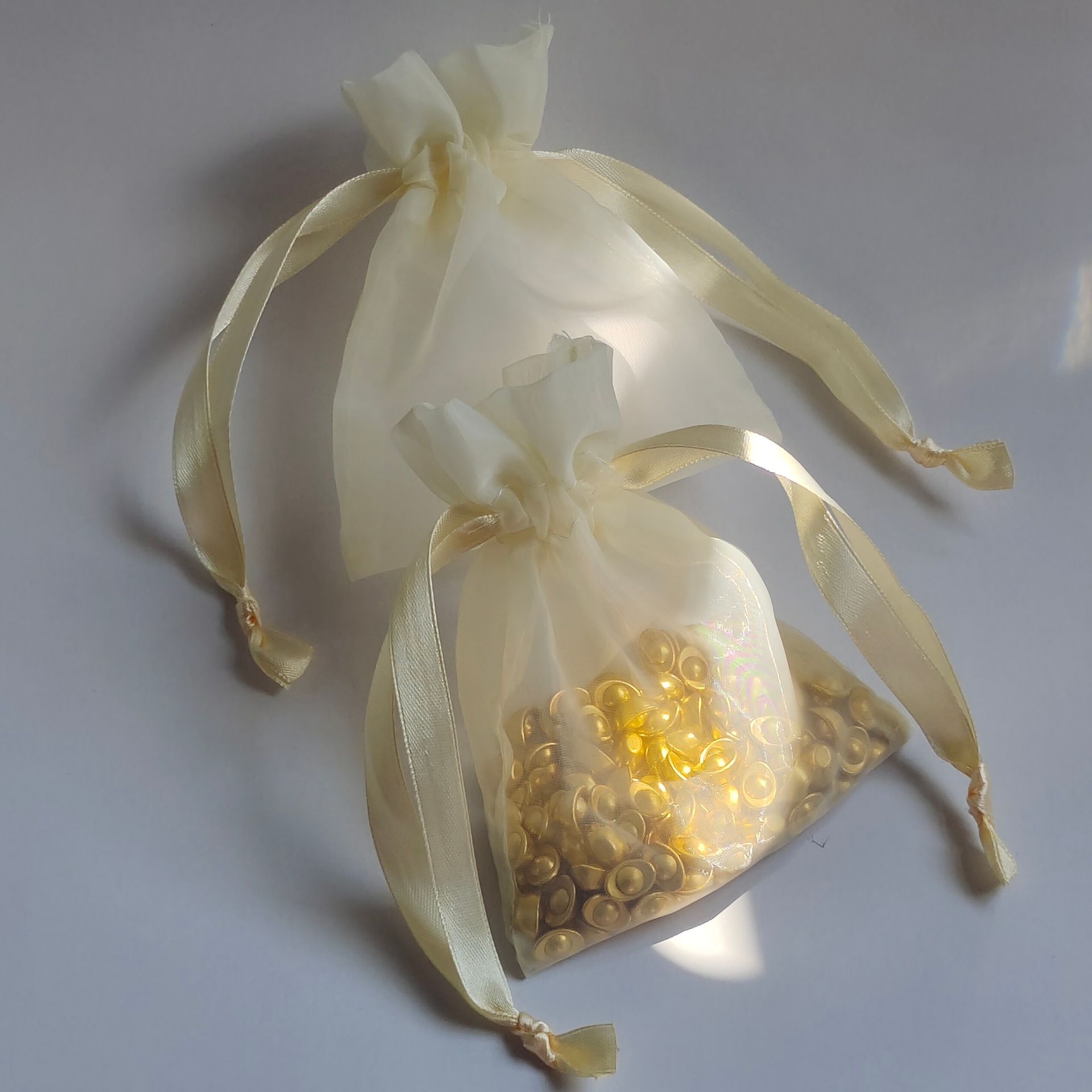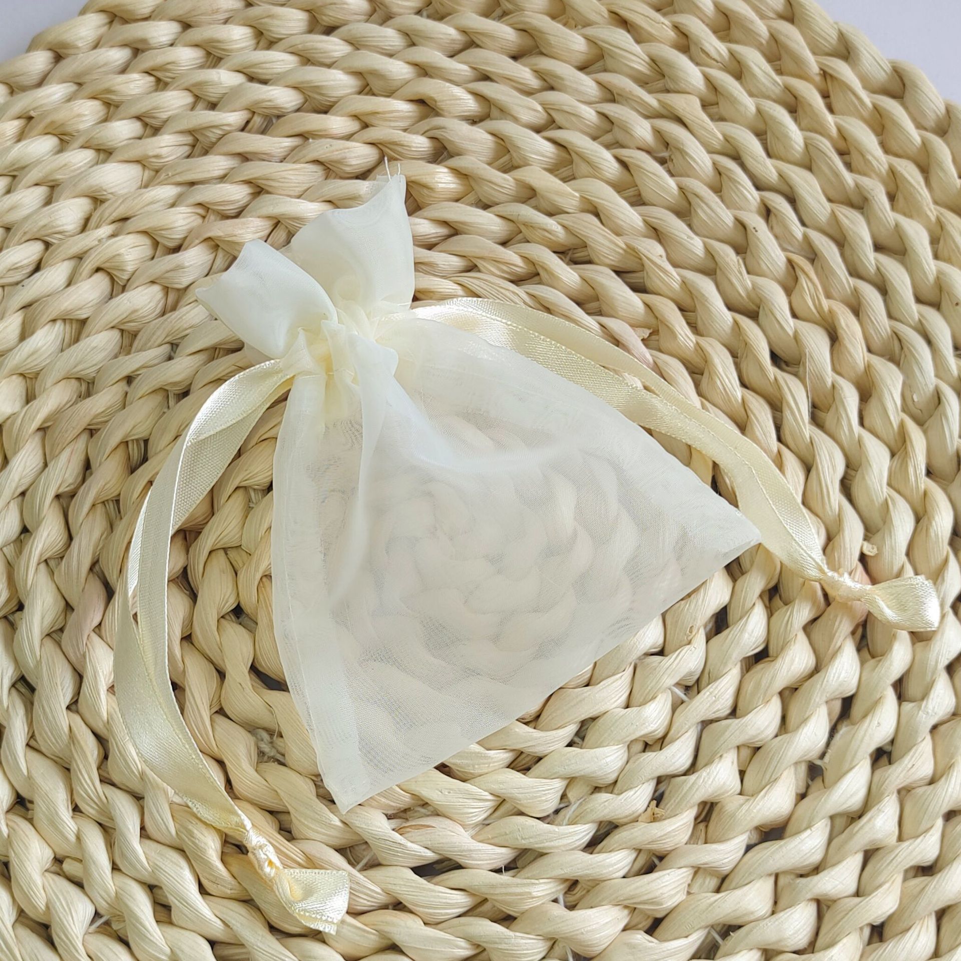 现货批发无光纱米黄色加密礼品束口袋首饰包装珍珠欧根纱束口纱袋