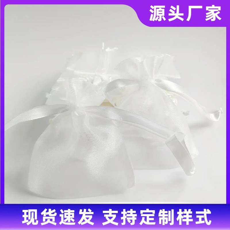 白色束口网纱袋饰品首饰包装袋抽绳收纳袋化妆品试用装小纱袋批发