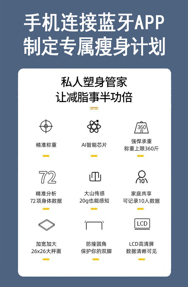 外国貿易クロスボーダー専用体重計工場卸売代行充電電子秤ブルートゥース家庭用小型体脂肪秤重