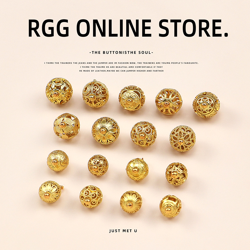古法镂空金属圆珠纽扣全铜材质高端国风新中式扣子旗袍汉服唐装扣