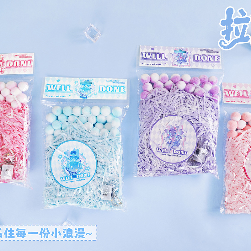 百集果酱和布布拉菲草(含灯串)马卡龙色带毛球灯串幻彩彩袋拉菲草