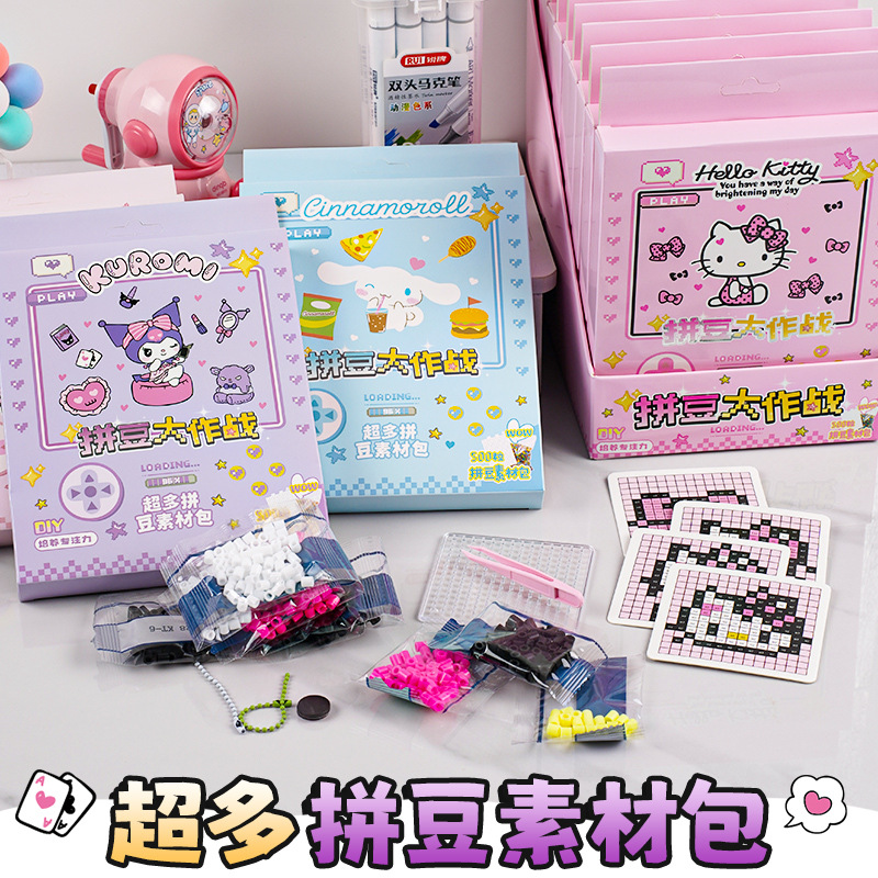 卡通家族拼豆大作战 创意手工拼豆素材包儿童手工趣味拼豆玩具