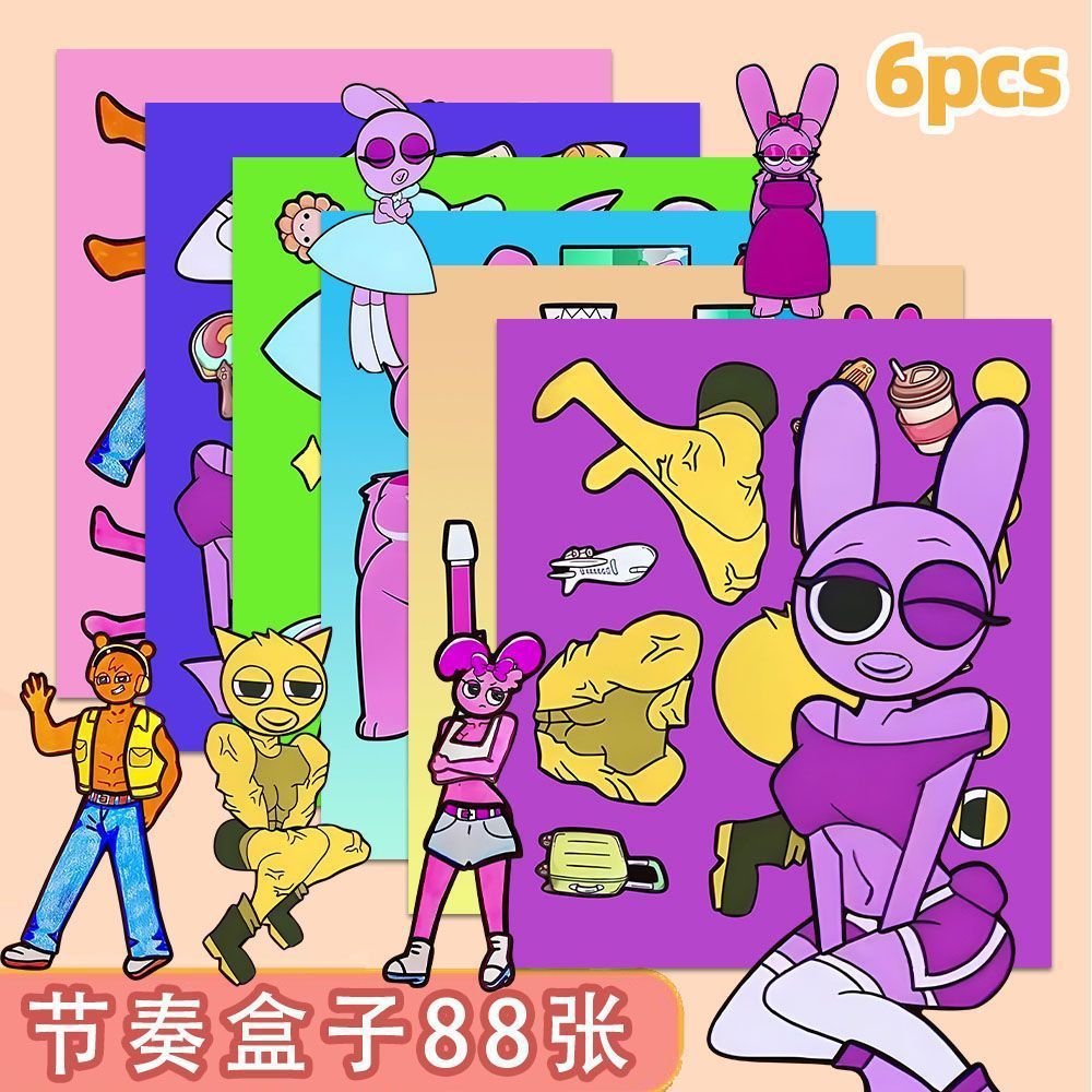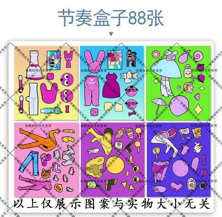 新款节奏盒子sprunki换装贴纸儿童益智趣味手工创意解压玩具贴画
