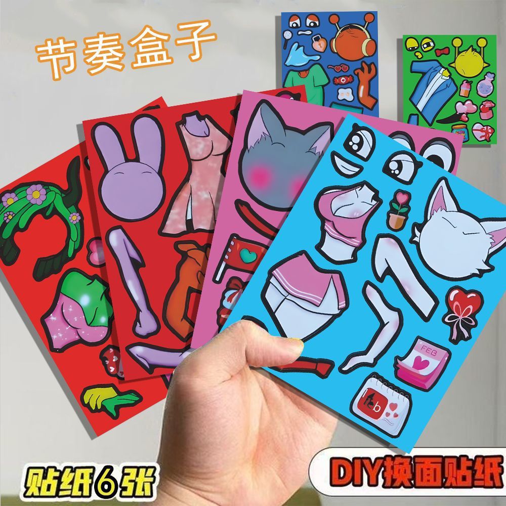 新款节奏盒子sprunki贴纸安静儿童益智手工diy换面贴画解压玩具