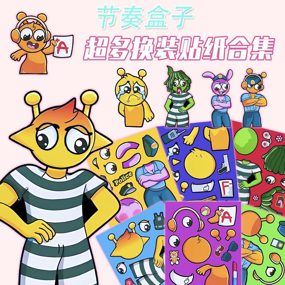 节奏盒子Sprunki人物换装贴纸儿童趣味益智换面解压手账DIY玩具贴