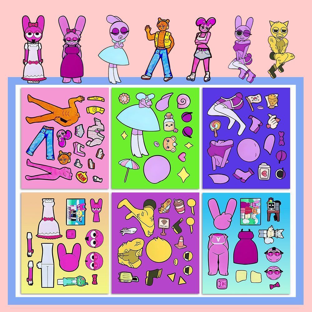 节奏盒子Sprunki新角色换装贴纸儿童益智趣味女孩手工专注力玩具