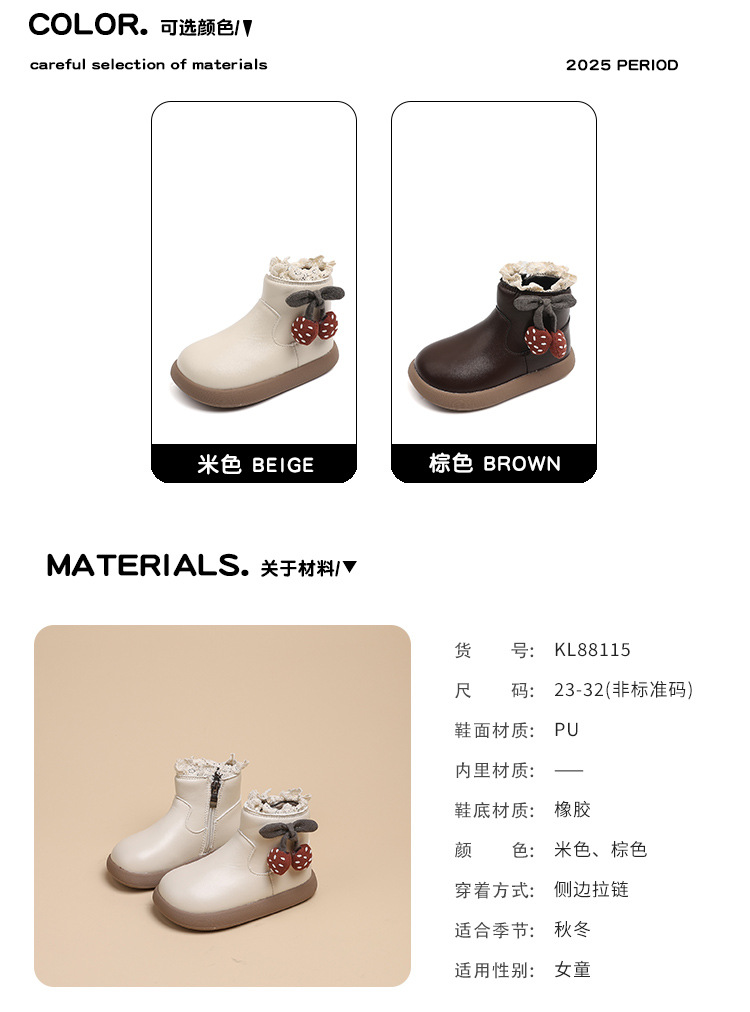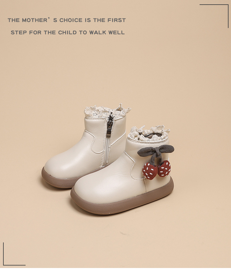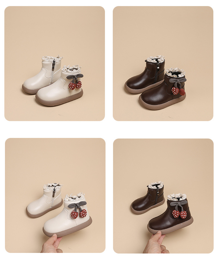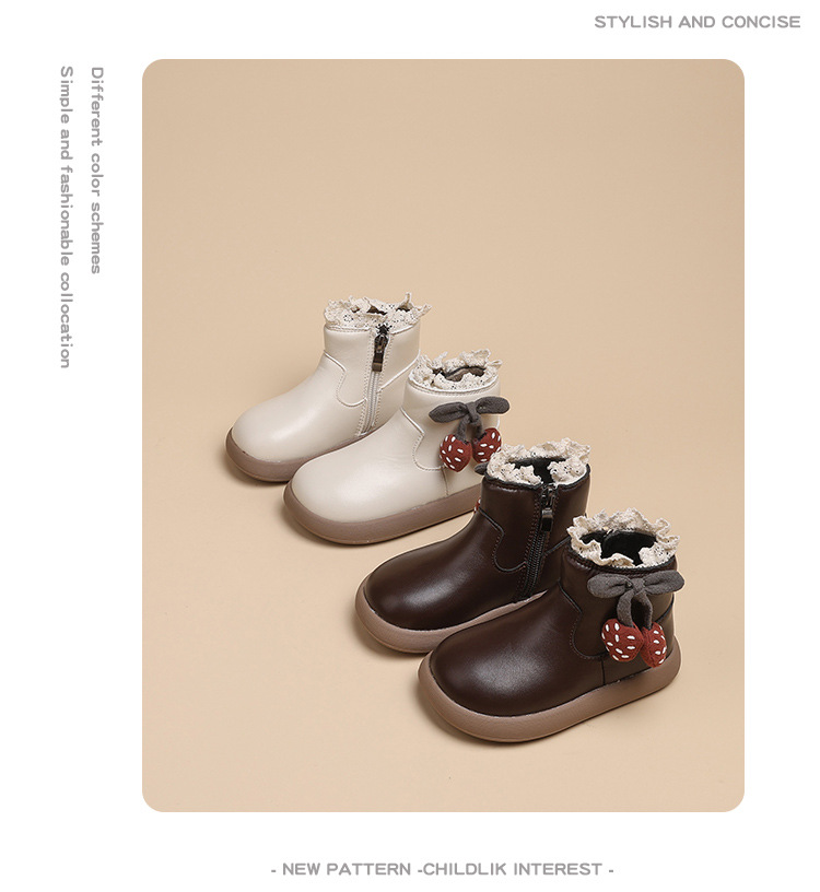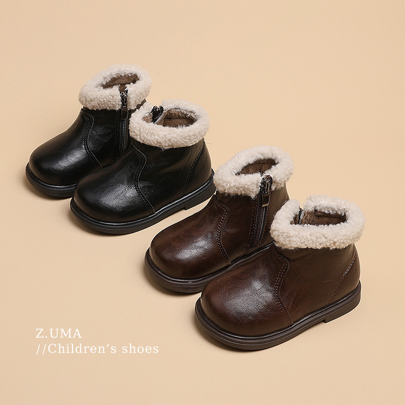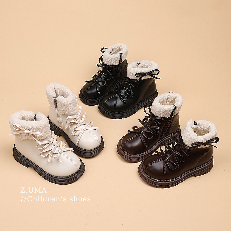 2025冬季韩版女童马丁靴加绒羊羔毛儿童公主靴中小童女孩二棉短靴