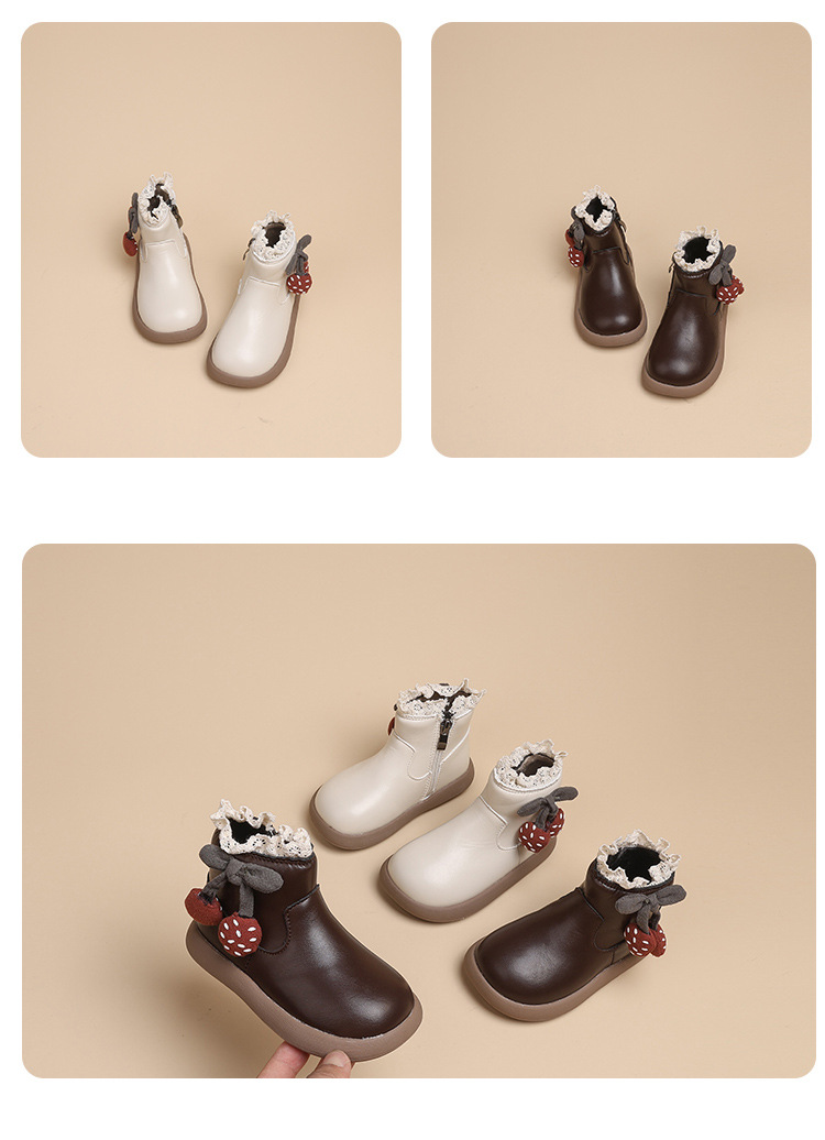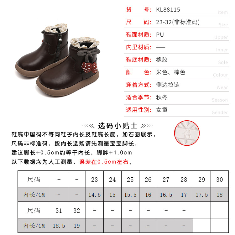女童加绒马丁靴韩版蝴蝶结毛毛短靴中大童棉靴厚底宝宝公主风靴子