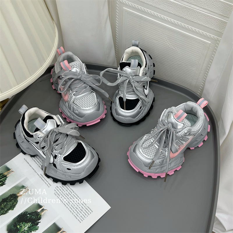 子供のお父さん2025春の新型のファッションブランドの女の子の運動靴は通気性が軽いです。