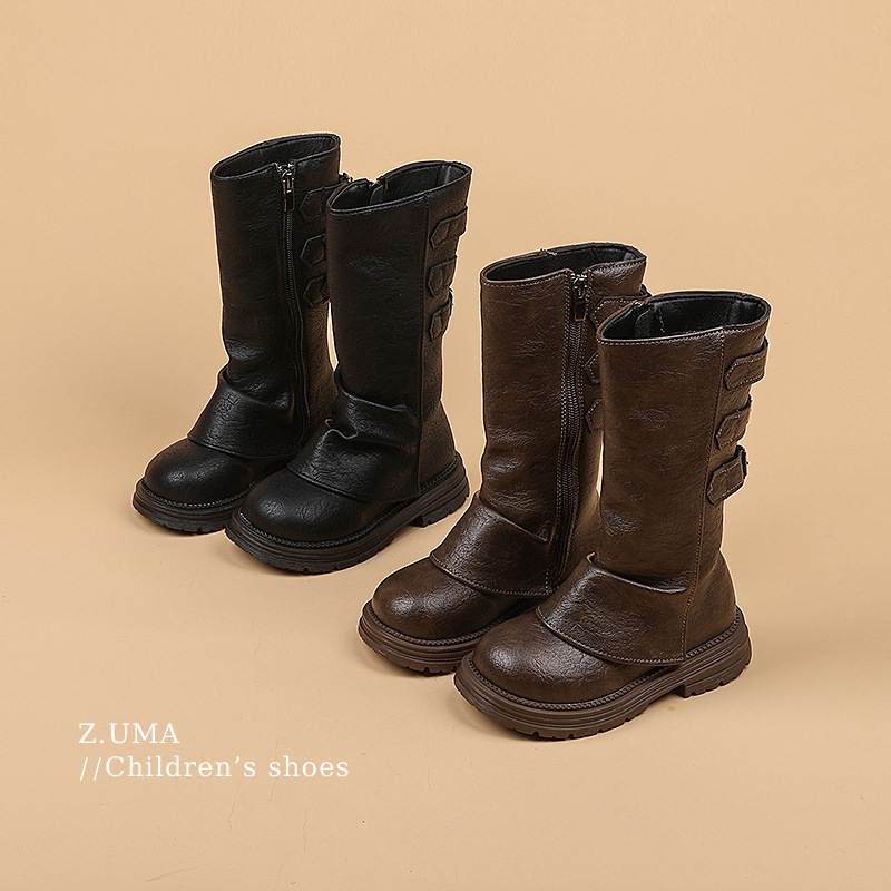 2025儿童长靴女童秋冬高筒靴时尚公主棕色长靴黑色马丁靴女童单鞋