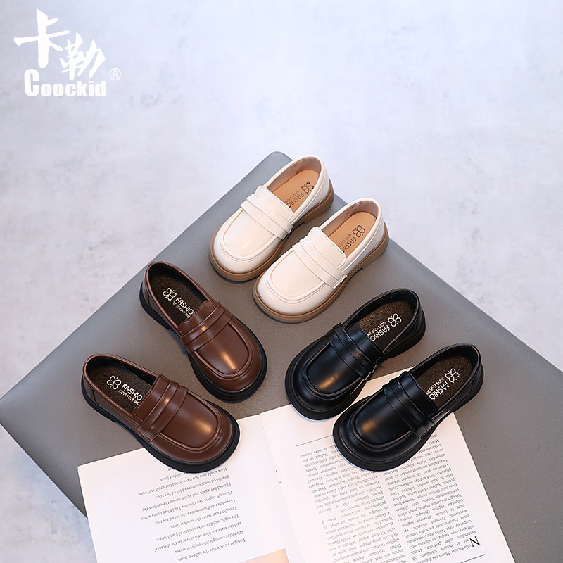 子供の英倫風楽福靴2024春の新型男女の子供の黒色の靴の小さい中の大きい子供の柔らかい底の小さい革靴