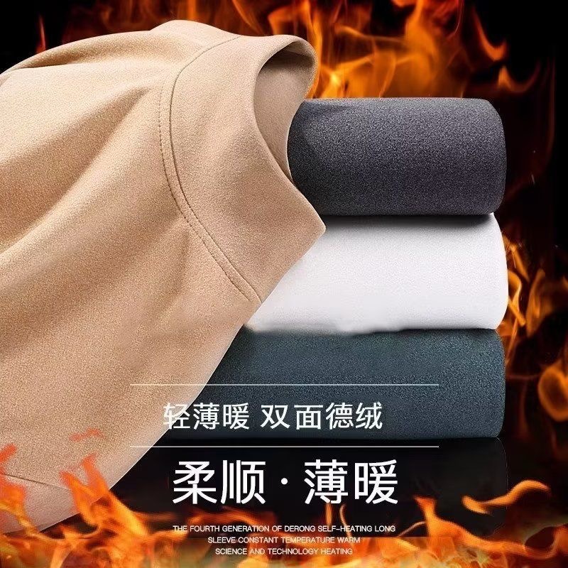 両面徳絨毛の半高襟の底のシャツの男性の対外貿易の越境の卸売りの春秋冬の保温の中で長袖のtシャツの男を掛けます。