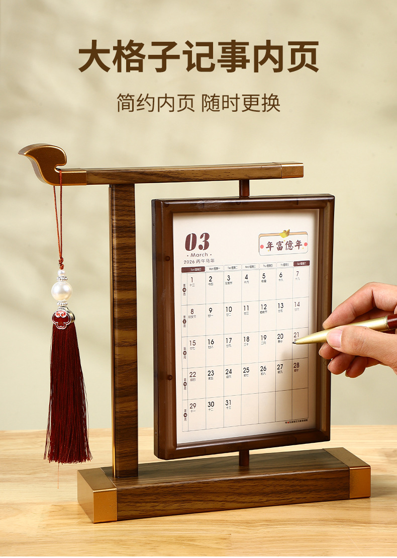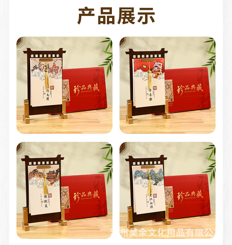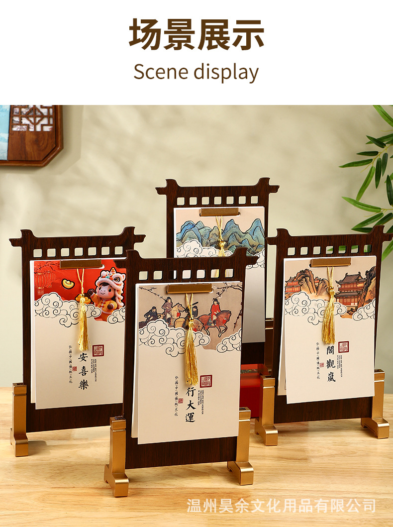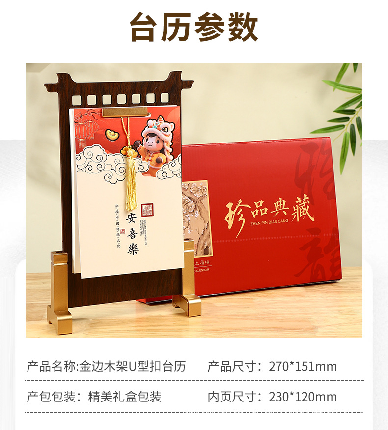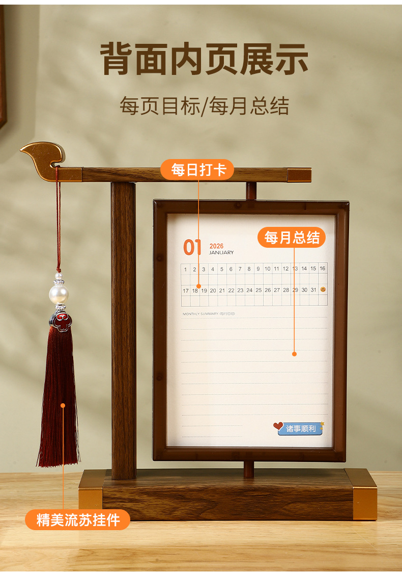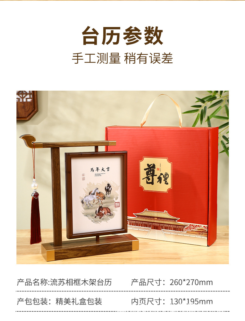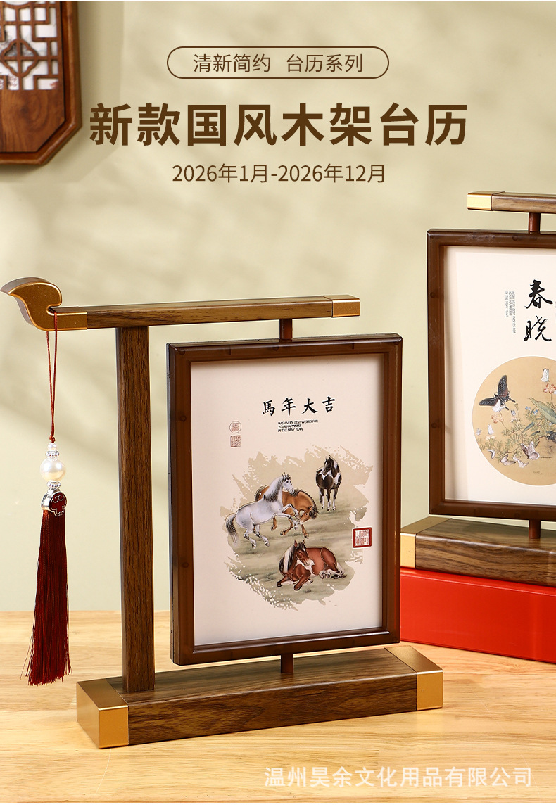 2026中式国风旋转台历定制相框高端日历面精美摆件可印刷定做LOGO