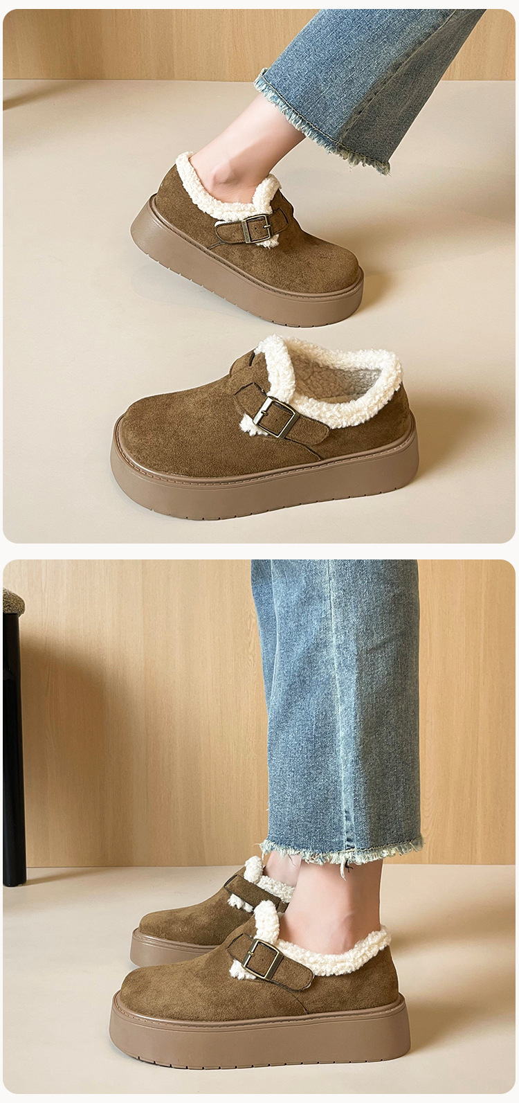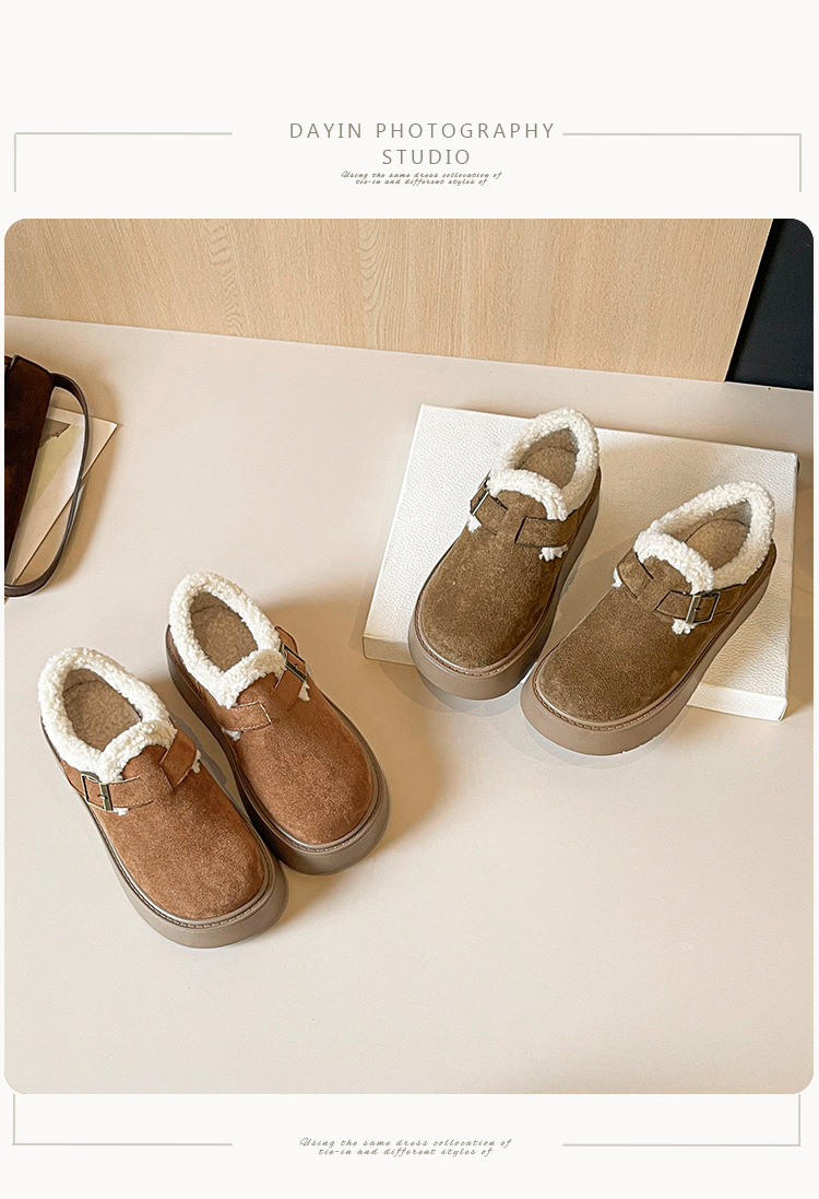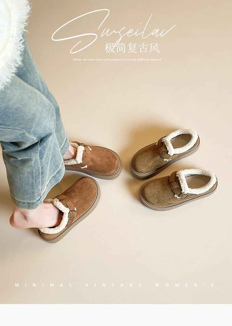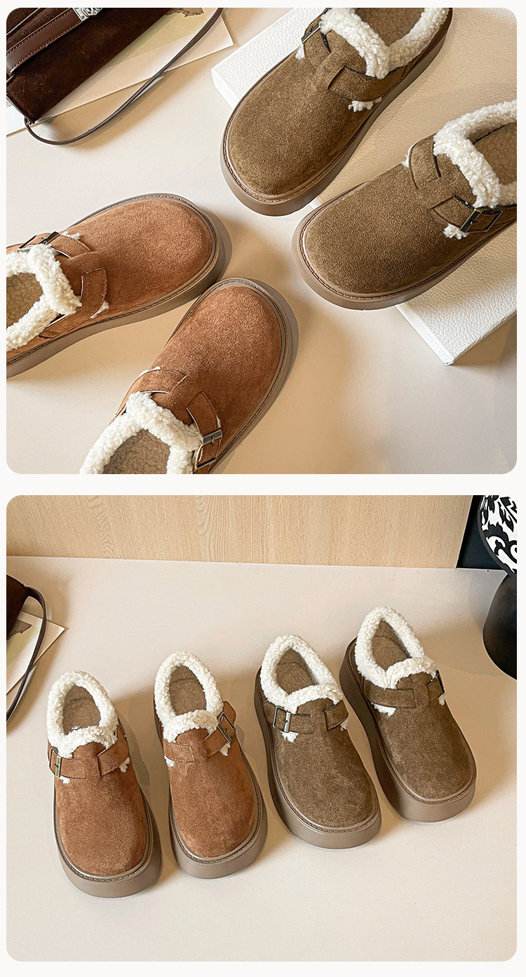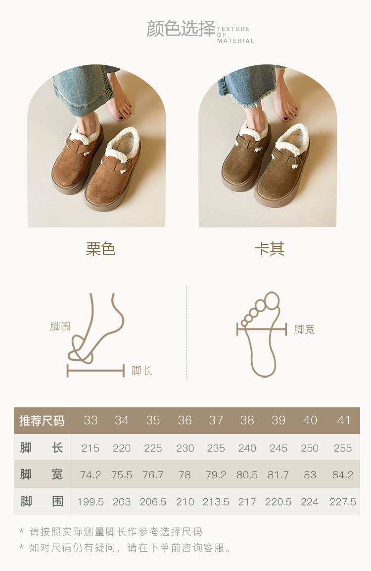 威威女郎 886-5加绒毛毛鞋复古勃肯鞋女保暖棉鞋厚底雪地靴女冬季