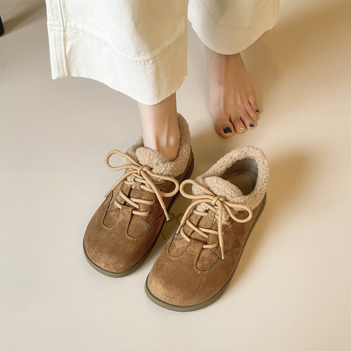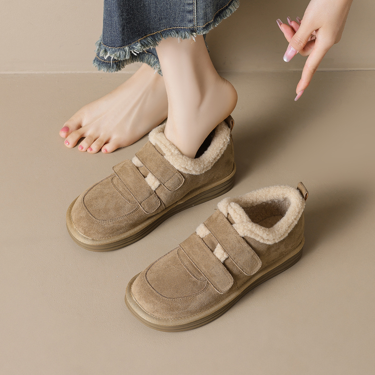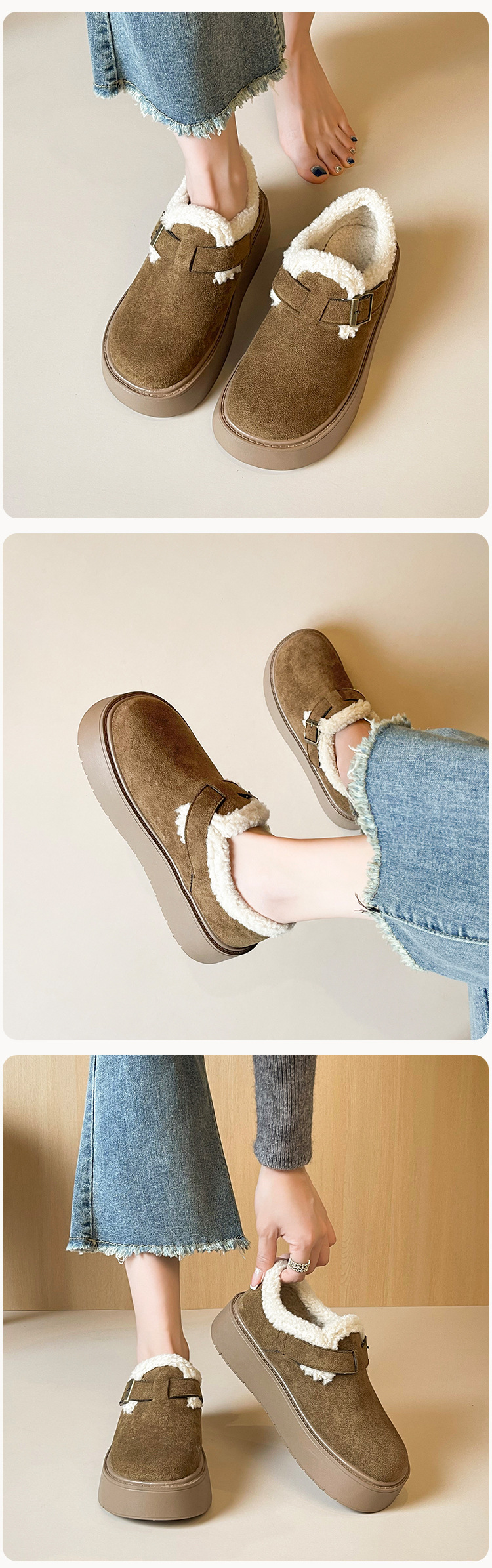 威威女郎 886-5加绒毛毛鞋复古勃肯鞋女保暖棉鞋厚底雪地靴女冬季