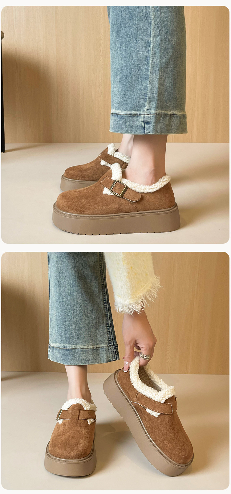 厚底雪地靴女款冬季防滑加厚保暖棉鞋子2025新款一脚蹬加绒毛毛鞋