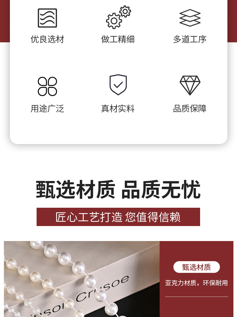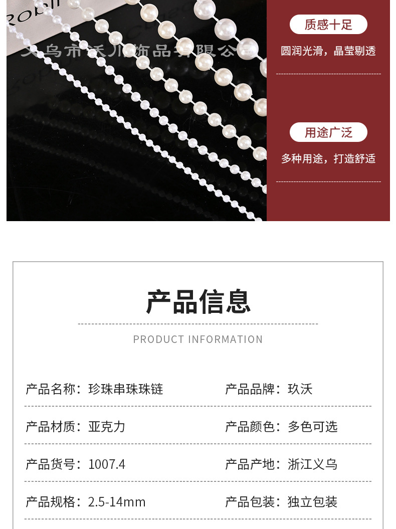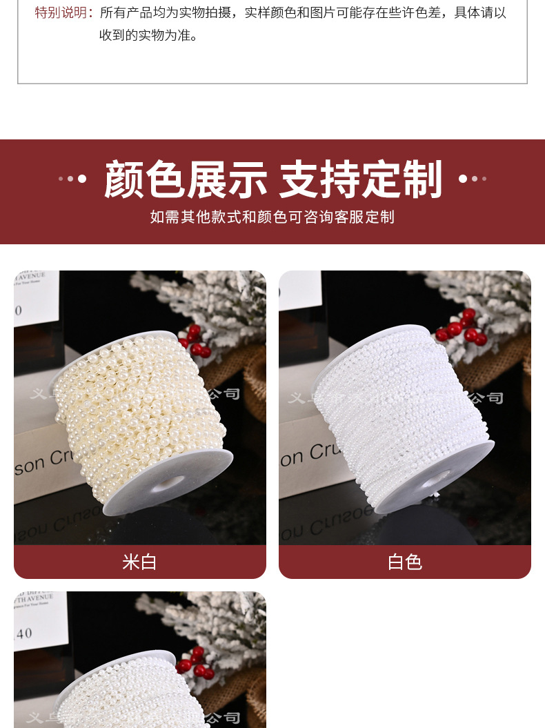 多规格仿珍珠半圆半面连线珠链棉线串珠绳链婚庆节日满天星装饰