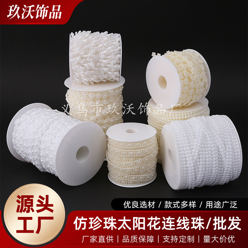 仿珍珠太阳花米色白色雪花连线珠链串珠节日婚庆线珠diy饰品配件